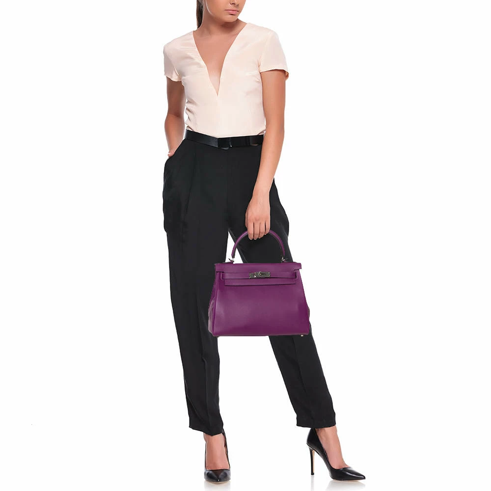 Inspired by none other than Grace Kelly of Monaco, Hermes Kelly is carefully hand-stitched to perfection. This Kelly Retourne is crafted from leather and has palladium hardware. Retourne has a more casual look and is stitched on the inside thus making its edges softer. The bag comes with a turn-lock closure, a single rolled top handle, and a padlock with its keys within a clochette. The leather-lined interior can easily fit in all your daily necessities. Invest in this beauty as it never goes out of style!