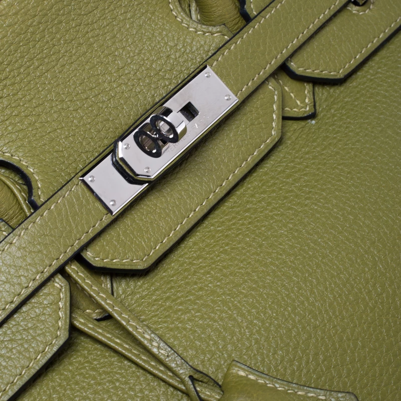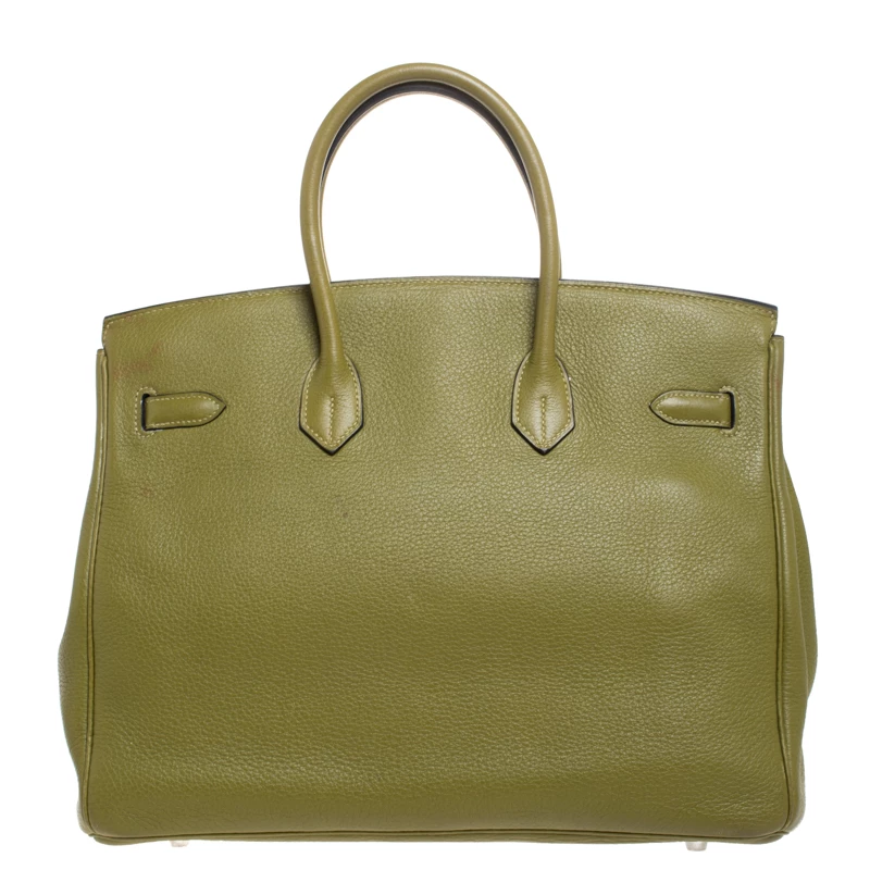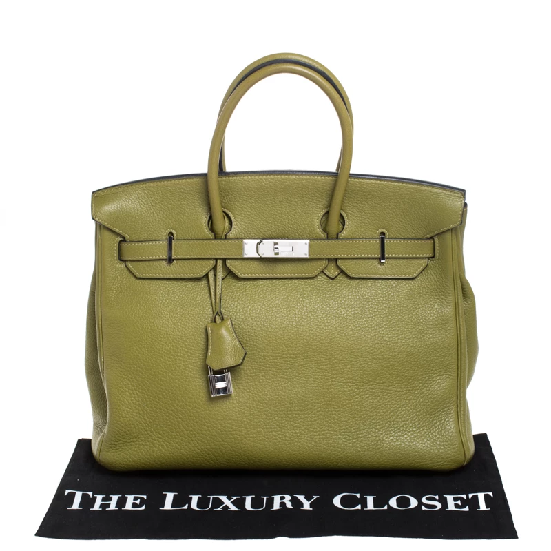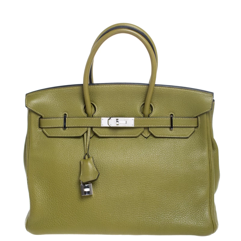A bag that has become a hallmark of luxury and class, the Birkin from Hermes is one of the most coveted bags in the world. Custom-made on the suggestions of Jane Birkin, hence the namesake, this bag is aimed to fit the wants of the fast-paced life of modern women. Timeless design coupled with rich craftsmanship, the structured body of this Birkin 35 bag is crafted from Clemence leather in Anis green. Its foldover top is secured by palladium turn-lock closure, accompanied by a dangling lock with its key safe inside a leather clochette. The interior of the bag has leather lining and is equipped with a zip pocket for storing little essentials. Complete with dual rolled handles and studs at the bottom, this bag is an investment that will last you for years.