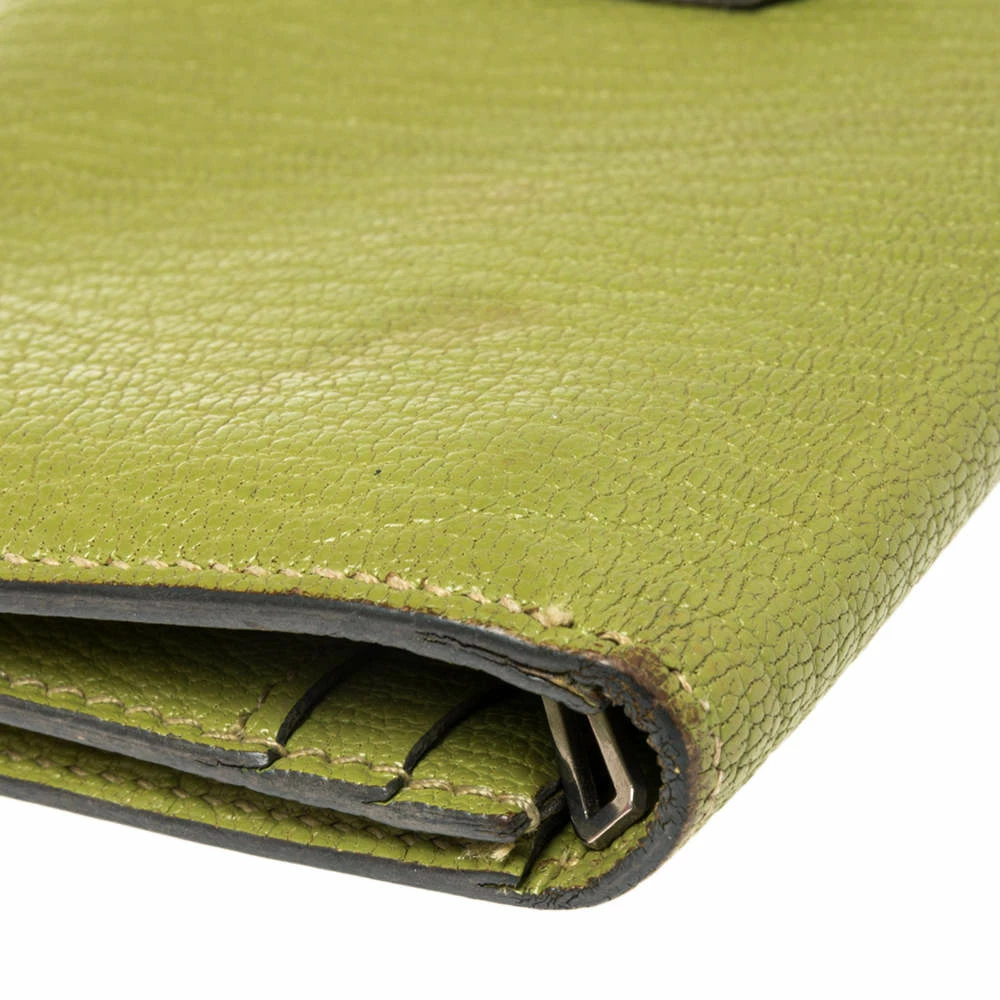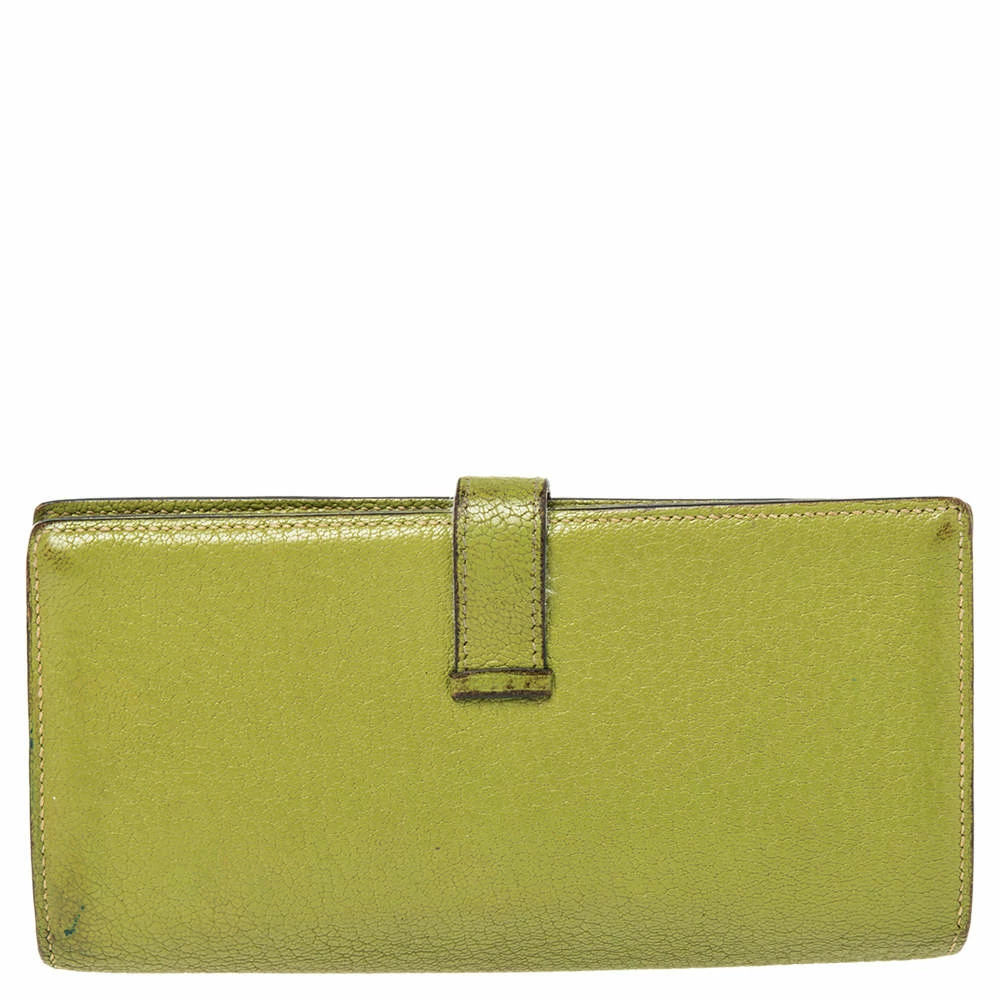 Luxuriously crafted by the experts at Hermes, this stunning Bearn Gusset wallet is a must-have accessory for luxury fashion lovers. Crafted in Mysore leather, this wallet carries an elegant appeal and a sleek silhouette. It features a silver-tone H on the front strap button closure that opens to a leather-lined interior to complete the look. The interior is composed of multiple card slots, slip pockets, and one zip pocket where you can conveniently store your cards, cash, and bills. This wallet is a charmer that can be carried solo in the hand and can be stowed easily in one of the brand’s luxury bags.