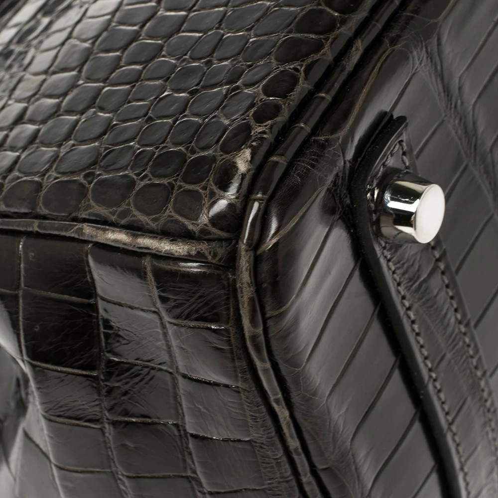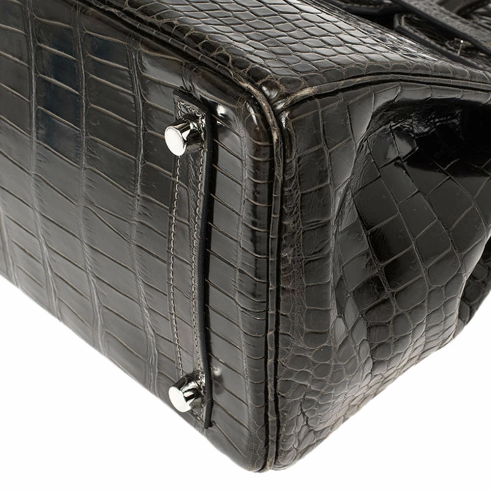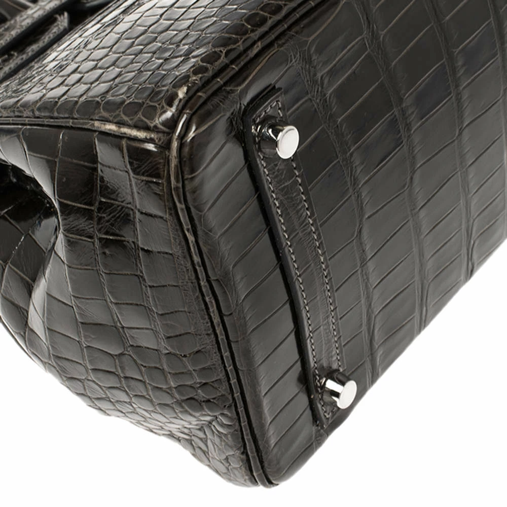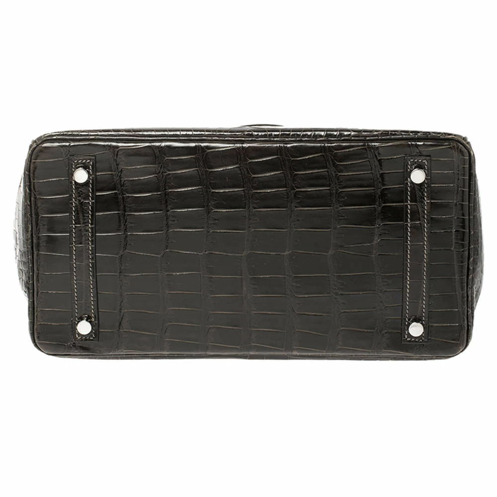 Hermes Birkin was inspired by Jane Birkin and is one of the most desired handbags in the world. A timeless classic that never goes out of style. Handcrafted from the highest quality of leather by skilled artisans, it takes long hours of rigorous effort to stitch a Birkin together. Crafted in France from exotic crocodile skin, the bag features dual top rolled handles. The bag comes with gold-tone hardware and has a spacious leather-lined interior that will hold all your belongings. High quality and flawless craftsmanship are synonymous with Hermes. Durable and resistant to wear, the Birkin is a heritage that can last many years. (NOTE: FOR UAE CUSTOMERS ONLY)