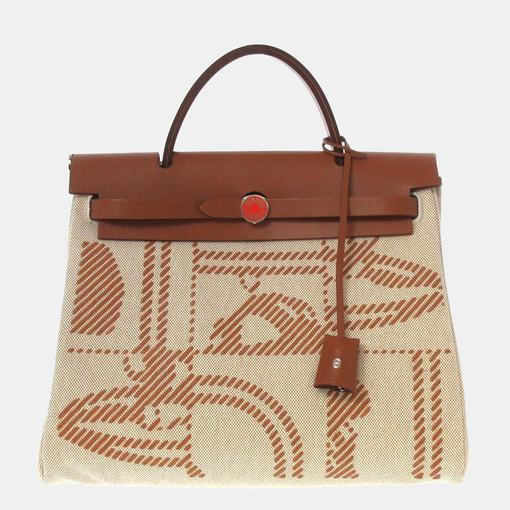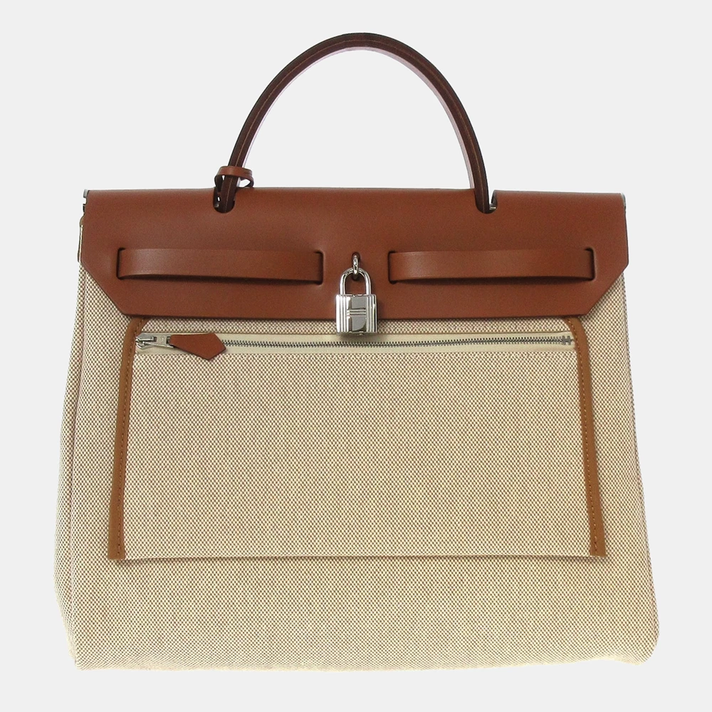 The Brides de Gala Toile H Herbag Zip 31 satchel features a canvas body, a flat leather top handle, a flat leather straps, a clochette, a front leather flap and a top drawstring closure.