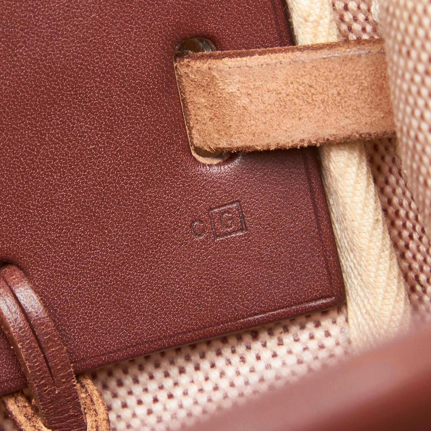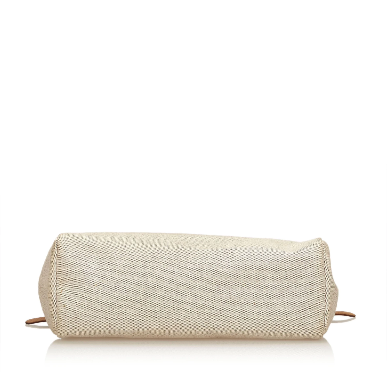 Designed in a rectangular silhouette, this Hermes Cabas MM bag is crafted from a combination of beige canvas and brown leather trims. It comes with two flat top handles and is ideally proportioned to house your everyday essentials.