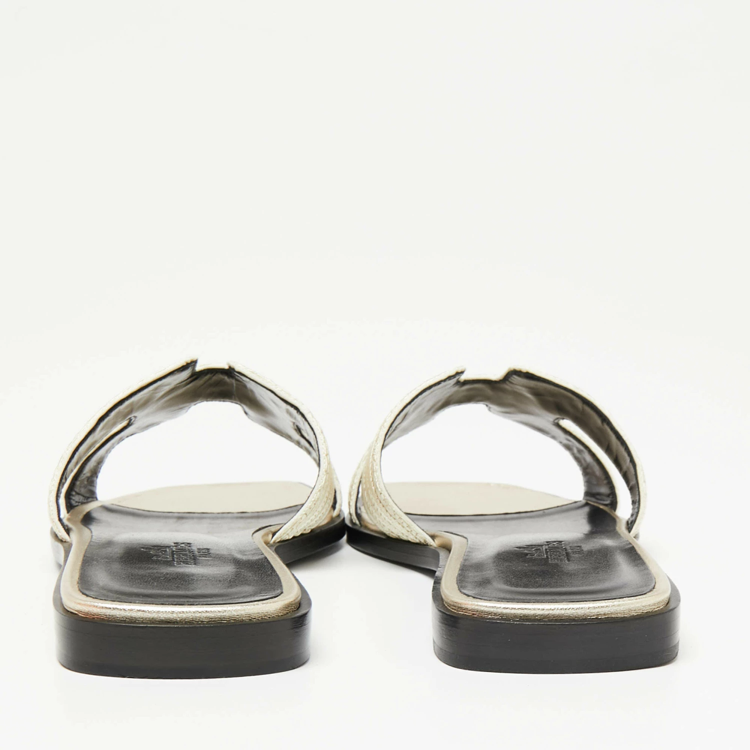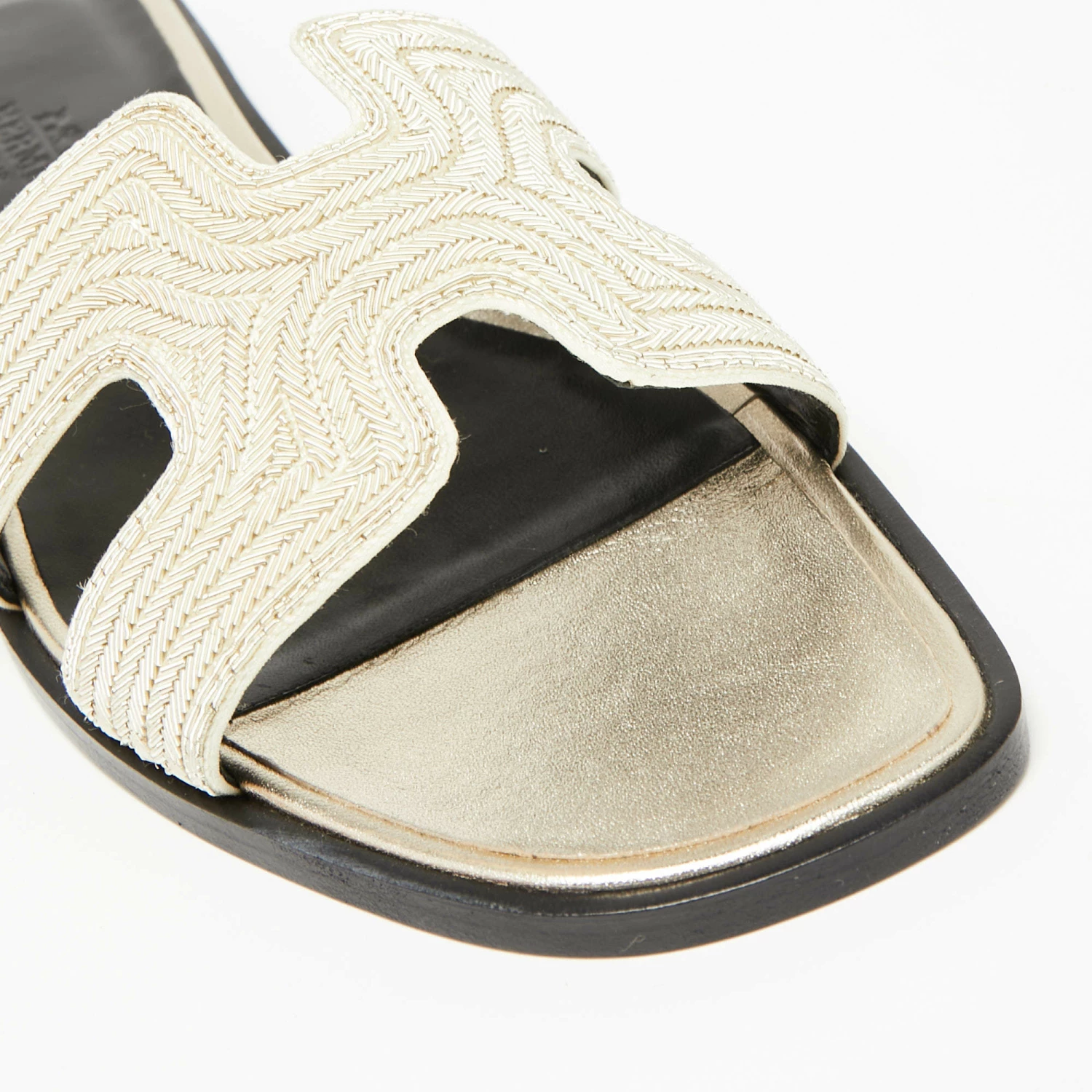 The House of Hermes provides exclusive designs that are timelessly modern and poised. These Oran flat slides lend your feet a unique style and appearance like none other. They are made from beige fabric and flaunt Dabka embroidery on the upper. Find true comfort as you walk in these slides.