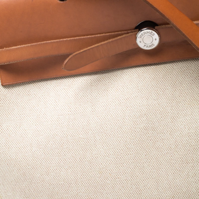 One of the most-loved icons of Hermes, the Herbag is clean built, elegant and highly functional. Constructed with a beige canvas body, this bag comes with a natural brown leather flap and a top handle. Secured with a silver-tone hardware accent, this bag opens up to a spacious interior ideal for everyday excursions.