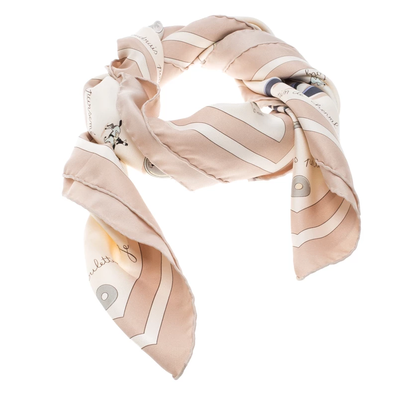 Hermes brings to you this Beige Raconte Moi Le Cheval Printed Square Scarf. It is beige in colour and so you can pair it up with all the dark colours in your wardrobe. The material is 100% silk and so adds to your comfort as well. Go buy it now!