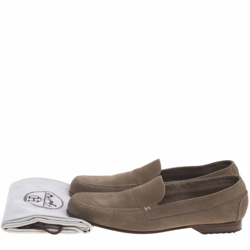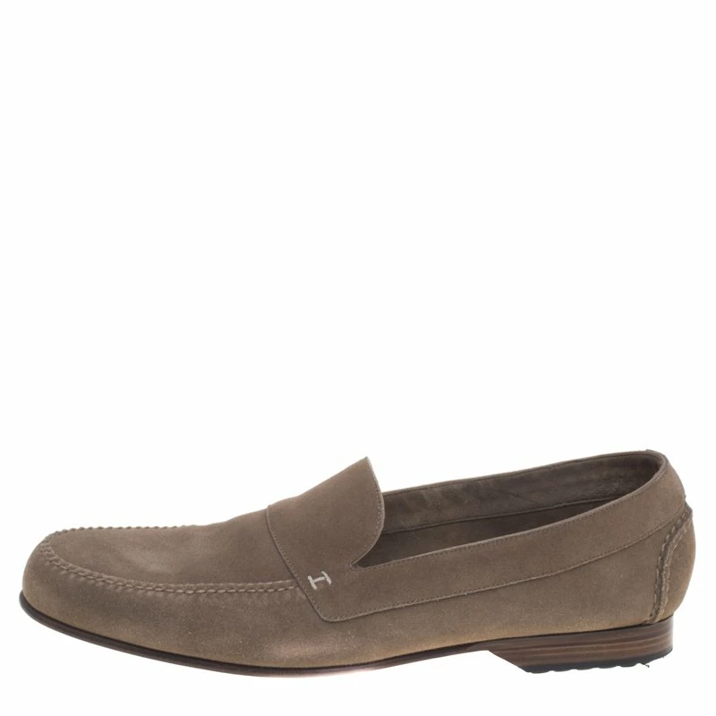 Hermes is known for their sophisticatedly crafted designs. These beige moccasins have been crafted from quality suede, lined with leather on the insides and also carry a little H detail on the front. They also feature stitched detailing on the vamp and rubber studs on the outsole. Pair them up with slim-fit chinos for a smart casual look.