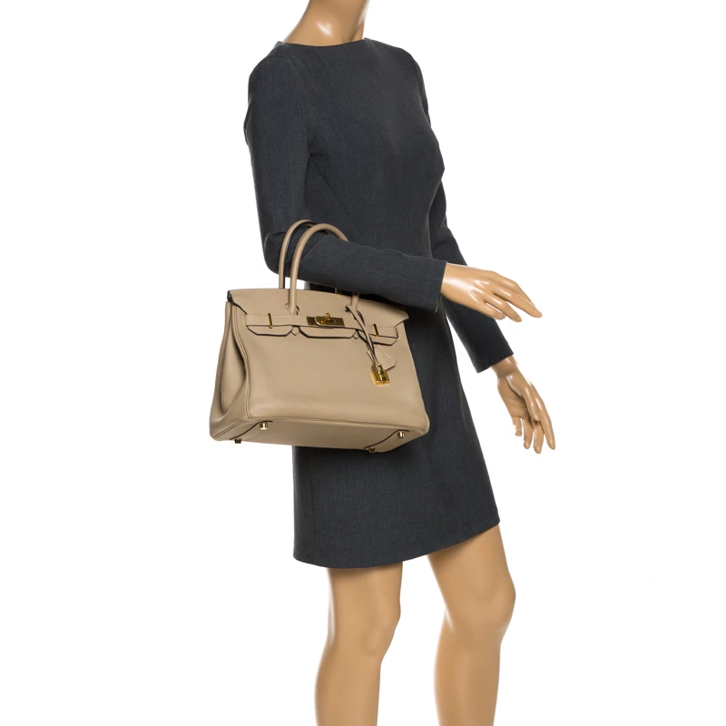 Inspired by Jane Birkin, the Hermes Birkin is one of the most desired handbags in the world. Over the years, it has risen to become a timeless classic that never goes out of style. Handcrafted from the highest quality of leather by skilled artisans, it takes long hours of rigorous effort to stitch a Birkin together. Crafted in France from Togo leather, the bag features dual top rolled handles and a padlock with its keys within a clochette. The bag comes with gold-tone hardware and has a spacious leather-lined interior that will hold all your belongings. Durable and resistant to wear, the Birkin is a heritage that can last many years.