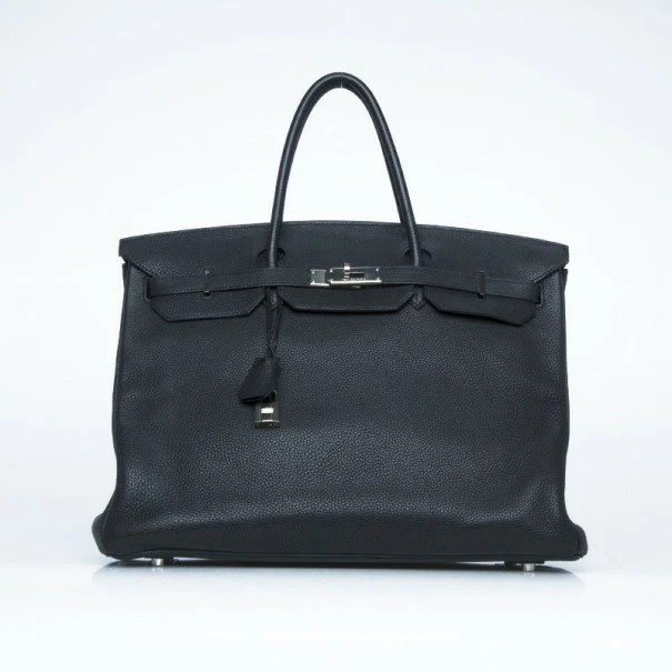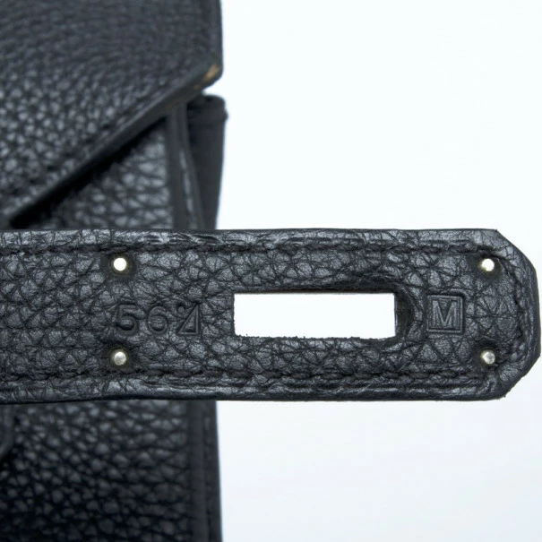 This Hermes Birkin 40 is crafted from chic black togo leather that features a twist lock closure, leather clochette, double handles, polished silver key and lock. The spacious leather lined interior features a zip and patch pocket. The Birkin is undeniably the most coveted bag in the world. Everyday hundreds of admirers leave their name on the Birkin List and hope for a call back. Its not unheard of to wait for years before getting your hands on one. Each bag is handmade in France, by expert craftsmen. Each bag is hand-sewn, buffed, painted, and polished, taking several days to finish. So few are produced each year, making a Birkin truly a prized possession.The Bag gets its name from Jane Birkin. In 1981, Hermès chief executive Jean-Louis Dumas was seated next to Jane Birkin on a flight from Paris to London. She placed her straw bag in the overhead compartment of her seat, but the contents fell to the ground. She explained to Dumas how difficult it was to find a leather weekend bag. This gave birth to the Birkin, as Hermes then created the bag based on a 1892 design.Blind stamp letter M (Manufacture year 2009)Final sale, no returns.
