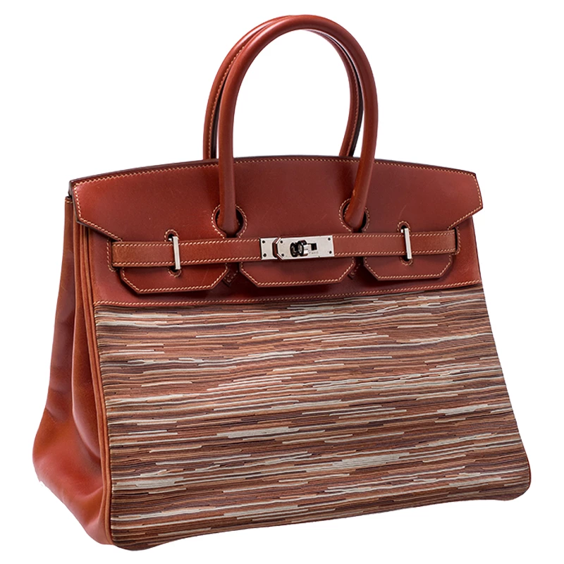 A bag that has become a hallmark of luxury and class, the Birkin from Hermes is one of the most coveted bags in the world. Custom-made on the suggestions of Jane Birkin, hence the namesake, this bag is aimed to fit the wants of the fast-paced life of modern women. Timeless design coupled with rich craftsmanship, the structured body of this Birkin 35 bag is crafted from striped vibrato and calf box leather. Its foldover top is secured by silver-tone turn-lock closure, accompanied by a dangling lock and key which is safe within a leather clochette. The interior of the bag has leather lining and is equipped with a zip pocket for storing little essentials. Complete with dual rolled handles and studs at the bottom, this bag is an investment that will last you for years.