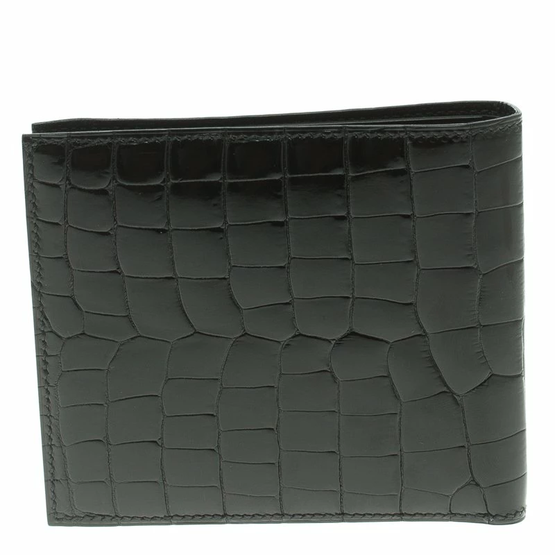 You’ll never be tired of carrying this wallet from Hermes because it is brimming with luxurious details. It is crafted from exotic Alligator skin and it comes with multiple slots and one main compartment. Adding to all that, the classy black hue effortlessly adds to the look of the wallet.