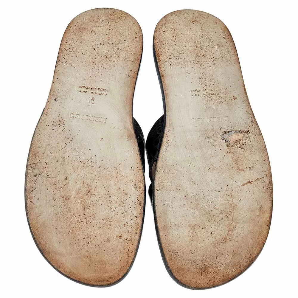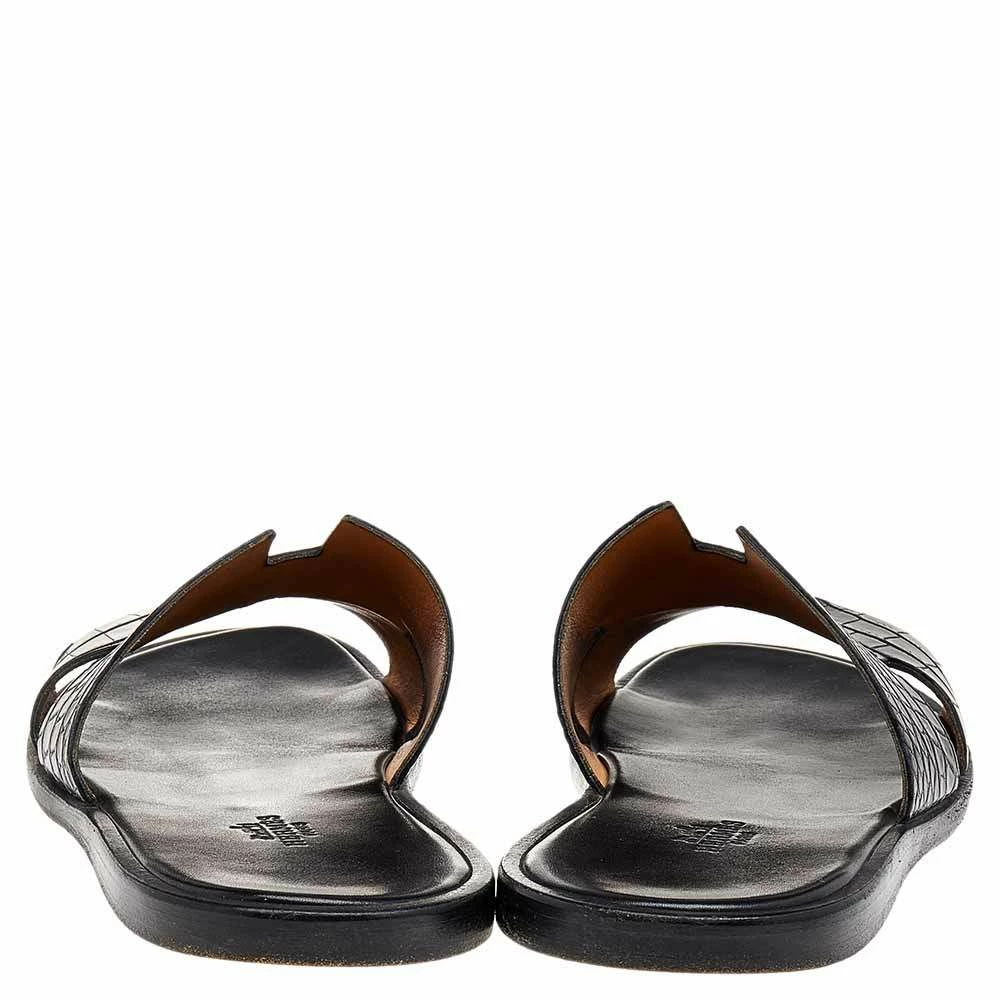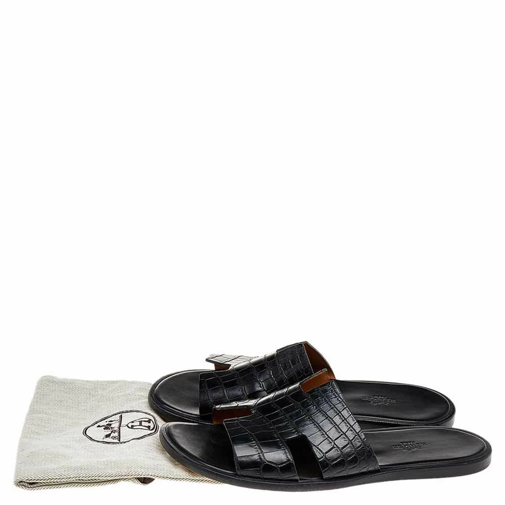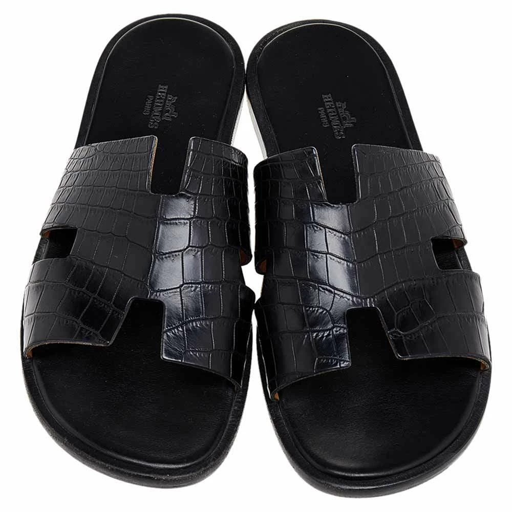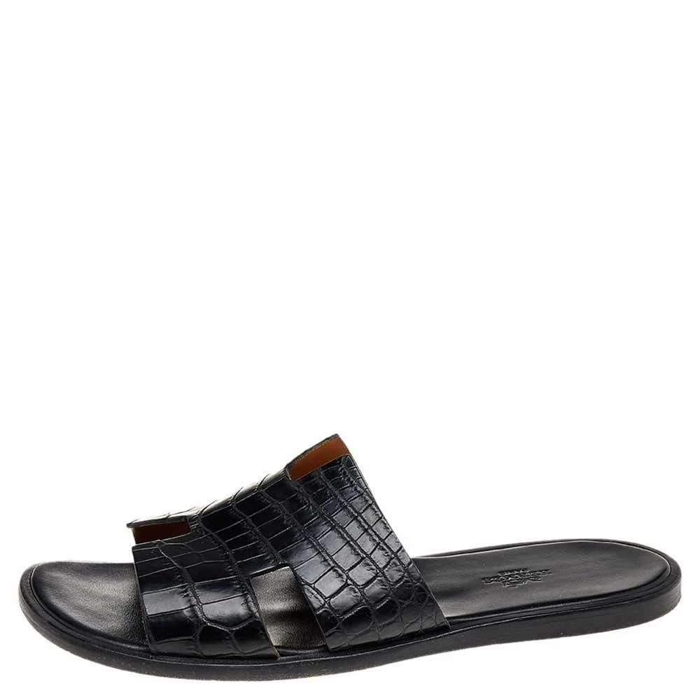 Hermes is a brand that epitomizes art and all their designs have a luxurious blend of comfort and style. These Izmir sandals have been crafted from alligator in Italy and feature the iconic H on the vamp, making it easy to slip on over all your casual outfits.