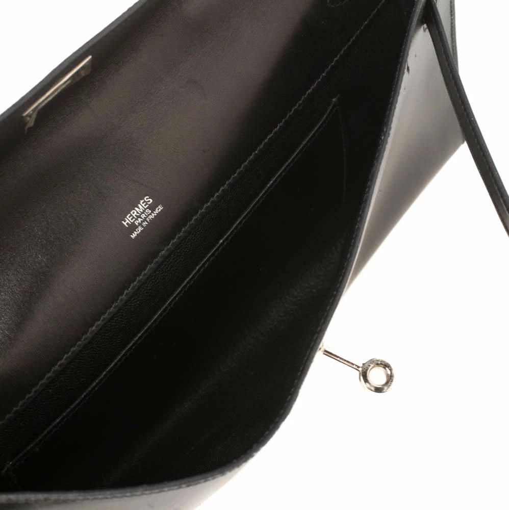 This Kelly clutch is carefully stitched to perfection. Crafted from Box Calf leather, it has a slim silhouette that’s easy to carry. The clutch has palladium hardware that forms the signature Kelly lock closure and a leather-lined interior that will hold your essentials. This Hermes Kelly Longue clutch is a timeless accessory.