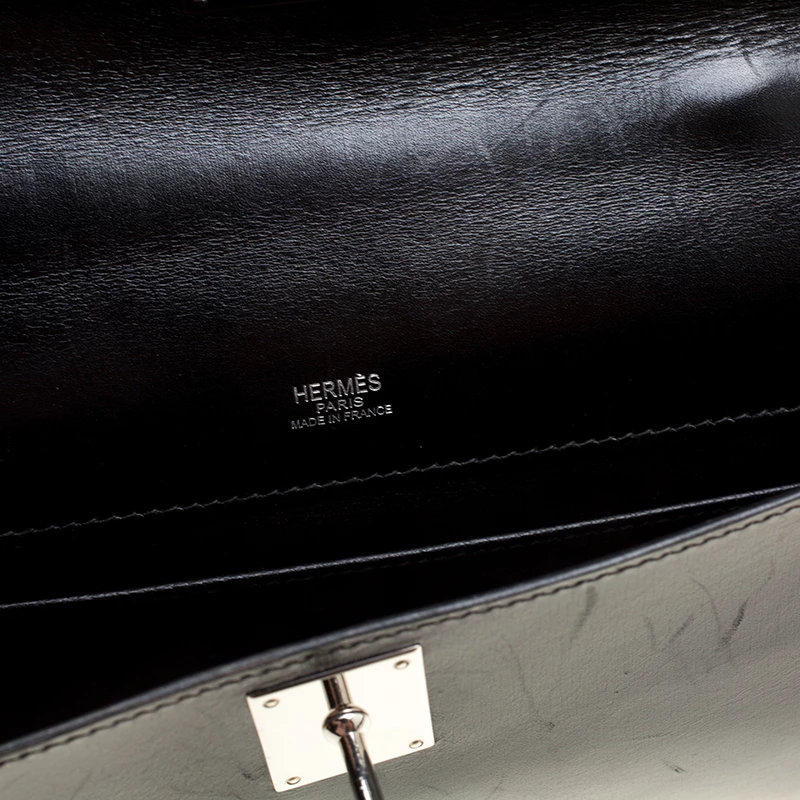 The range of Kelly bags was Inspired by none other than Grace Kelly of Monaco. Kelly clutch is carefully hand stitched to perfection. Crafted from calf leather, it has a slim silhouette that’s easy to carry. The clutch comes with palladium hardware and the signature Kelly lock closure opens to a leather lined interior that will hold your essentials. Own this gorgeous Hermes Kelly Longue clutch today and light up your closet!
