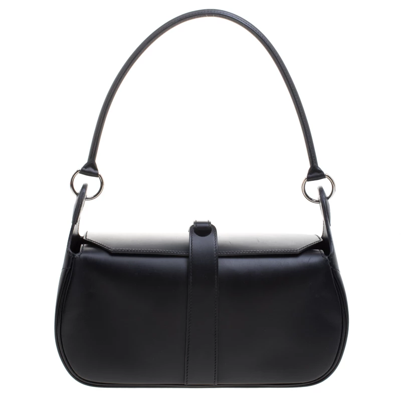 This gorgeous Rugby bag from Hermes is simple in design. This black creation is crafted from box calf leather and features a single top handle. The buttoned closure opens to a leather lined interior that has enough space to hold your essentials.