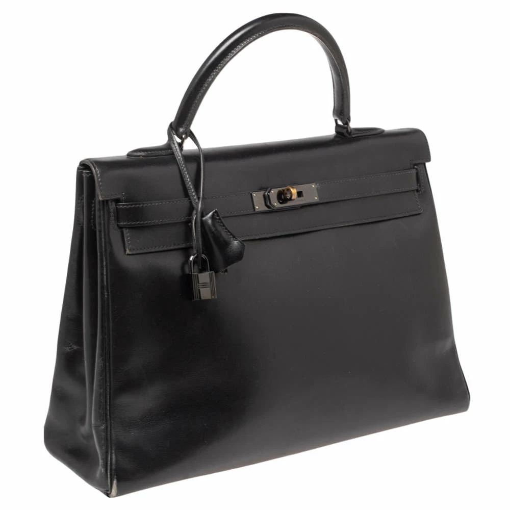 Inspired by none other than Grace Kelly of Monaco, Hermes Kelly is carefully hand-stitched to perfection. This Kelly Retourne is crafted from Box Leather and has black-tone hardware. Retourne has a more casual look and is stitched on the inside thus making its edges softer. The bag comes with a turn-lock closure, single top rolled leather handle, and a padlock with its keys within a clochette. The leather-lined interior houses a zip pocket and the bag can easily fit in all your daily necessities. Invest in this beauty as it never goes out of style!