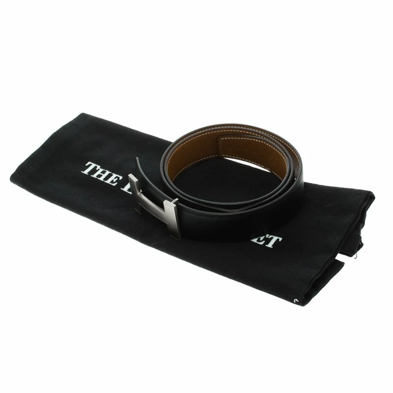 With the iconic silver ‘H’ logo as the buckle, this Epsom Quizz belt from Hermes features black exterior and a brown interior. The 85cm long belt is made from exquisite leather with tonal stitch details on both the rims. Team it up with formals for a sharp look.