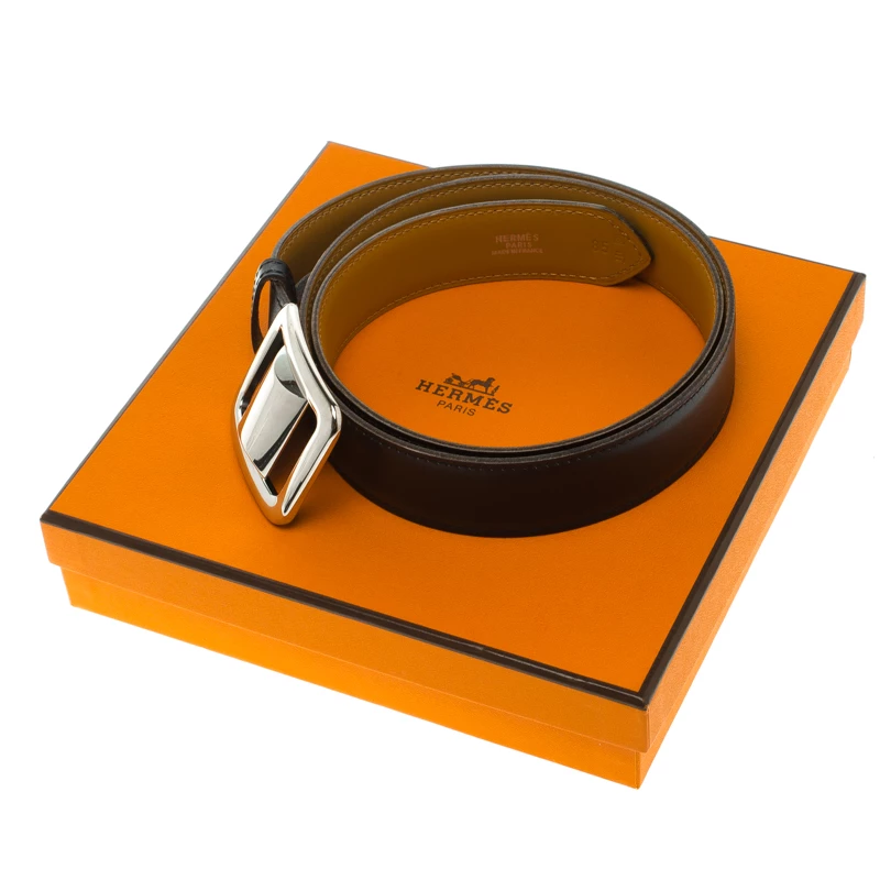 A classic add on to your collection of belts, this Hermes Reversible Belt features a simple yet classy design. Crafted from box calf leather in France, the piece has tonal stitching and a buckle in silver tone. The black/brown belt can be styled in many ways.