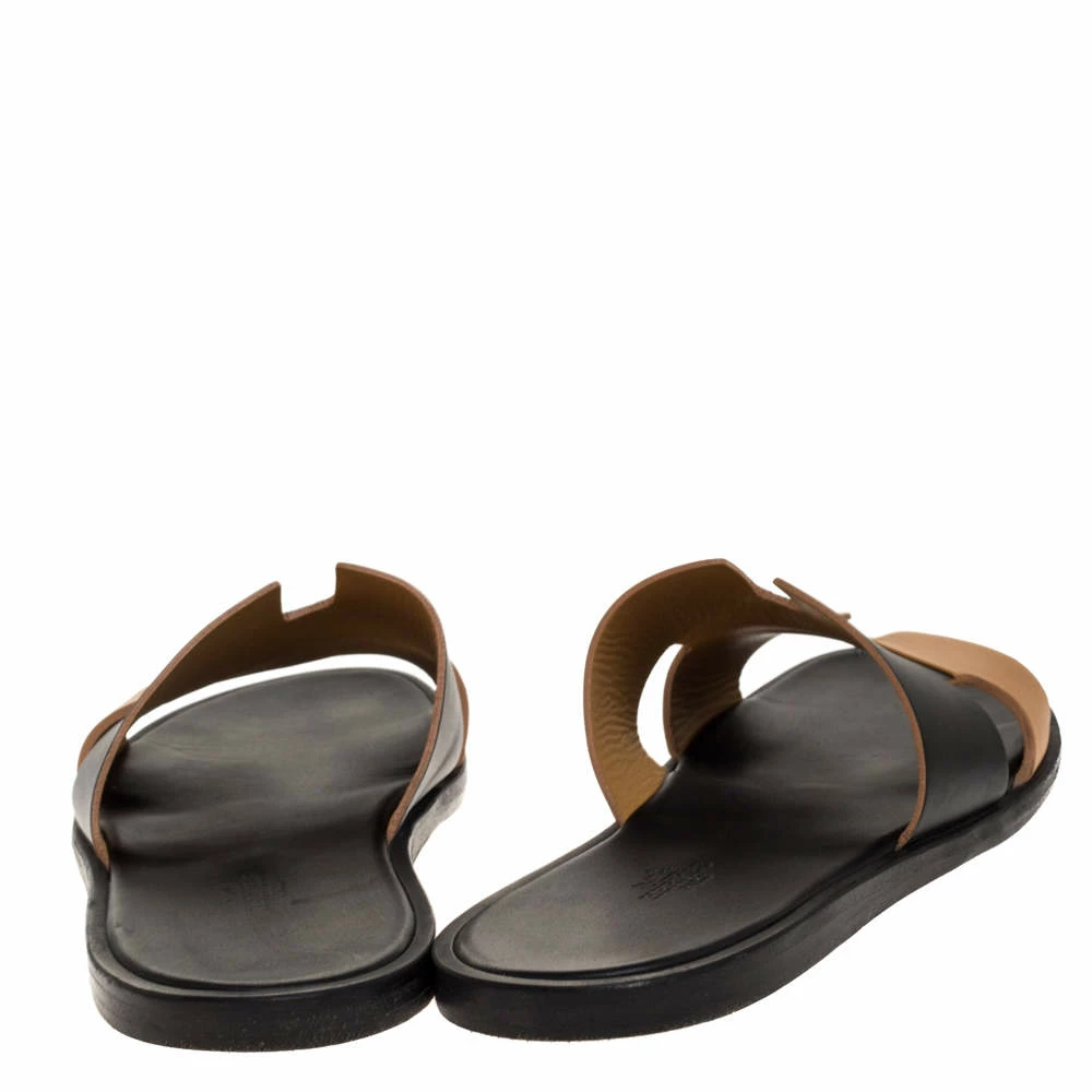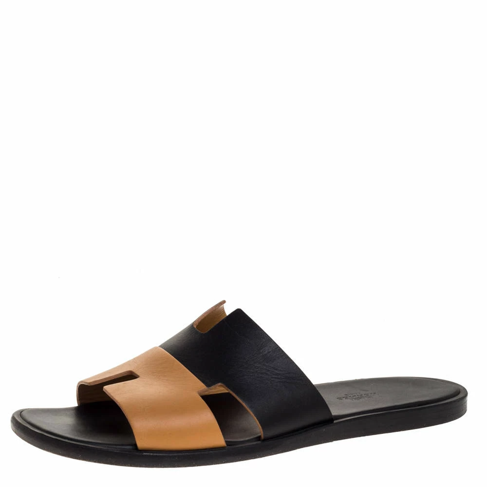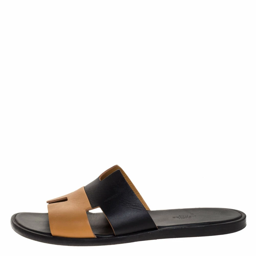 Hermes is a brand that epitomizes art and all their designs have a luxurious blend of comfort and style. These black-brown Izmir sandals have been crafted from leather in Italy and feature the iconic H on the vamp, making it easy to slip on over all your casual outfits.