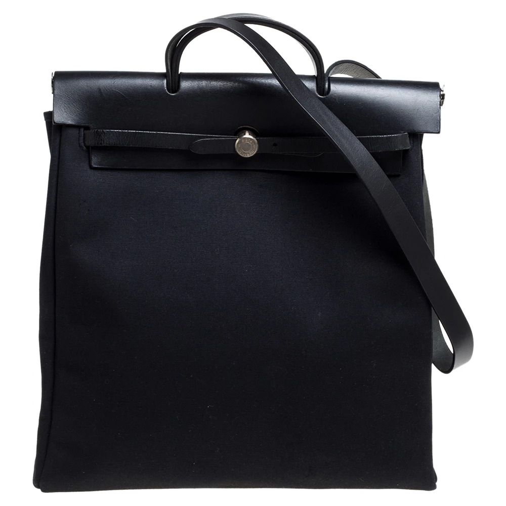 One of its most-loved icons of Hermes, the Herbag is clean built, elegant and highly functional. Constructed with a black canvas body, this bag comes with a leather flap and a top handle. Secured with palladium hardware, this bag opens up to a spacious interior ideal for everyday excursions.