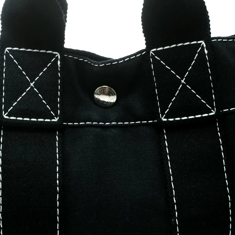 Hermes brings you this pretty, utilitarian creation meticulously made from canvas and perfectly sized to assist you while traveling. The Fourre Tout is spacious with a canvas-lined interior and is equipped with two handles; it is styled with perceptible stitching along with silver-tone hardware.