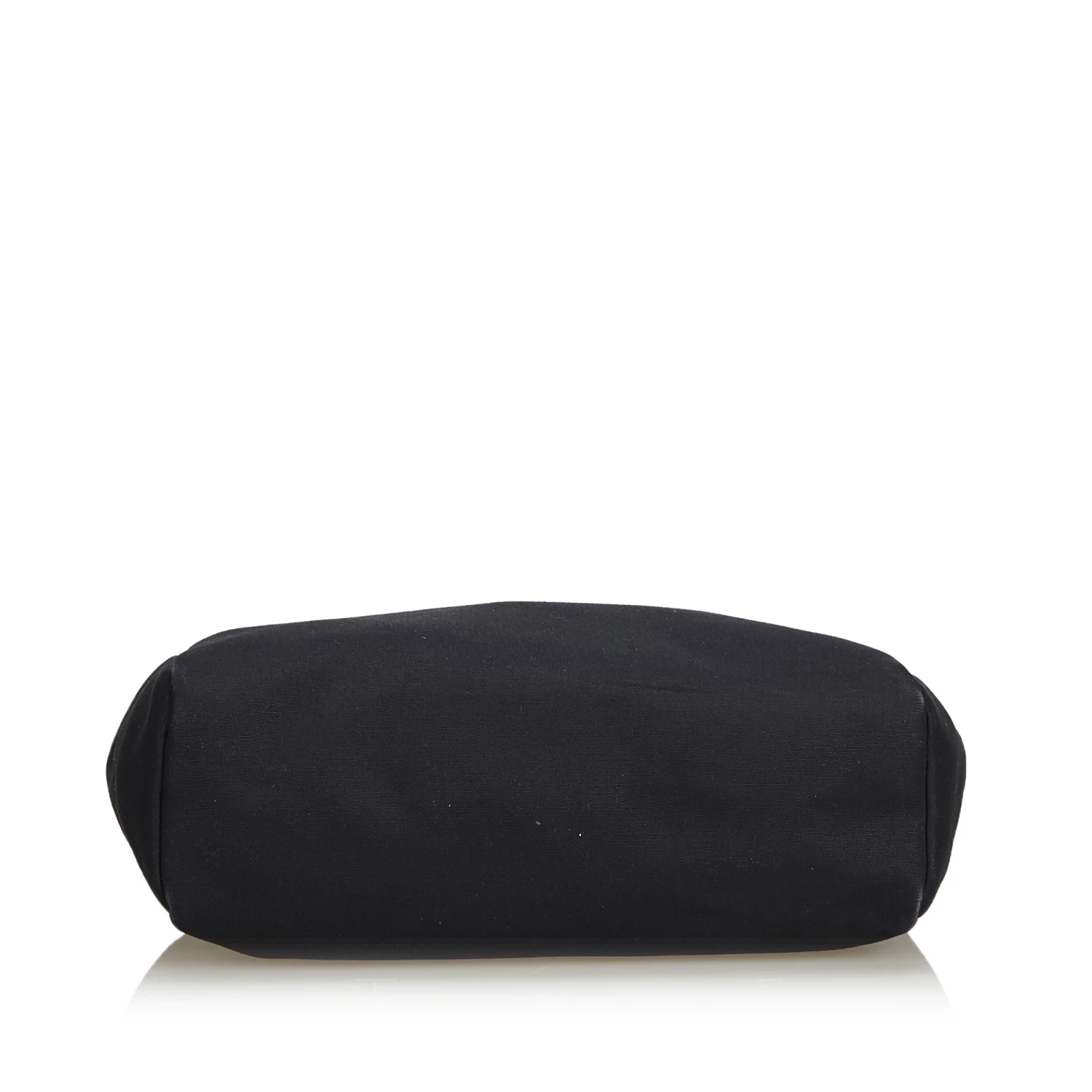 Add power and grace to your wardrobe with this elegant satchel from Hermes. The body of the bag is made from plain black canvas and has matching leather trim. The bag has a leather pack handle an adjustable flat leather shoulder strap as well. Pair this bag with an elegant linen shirt and a pencil skirt.