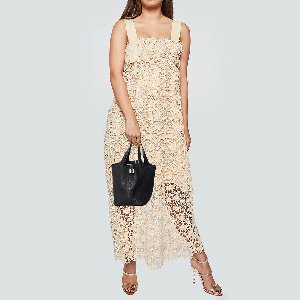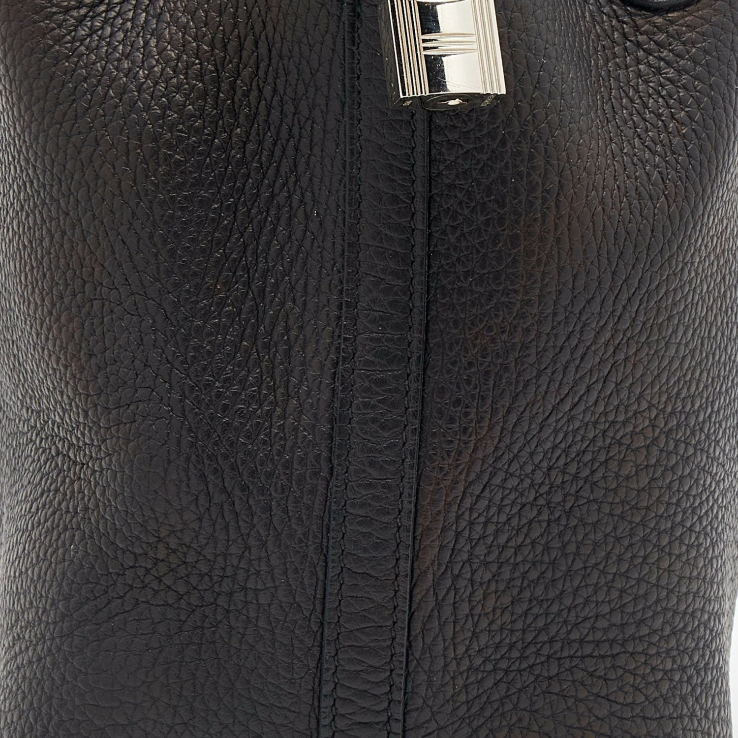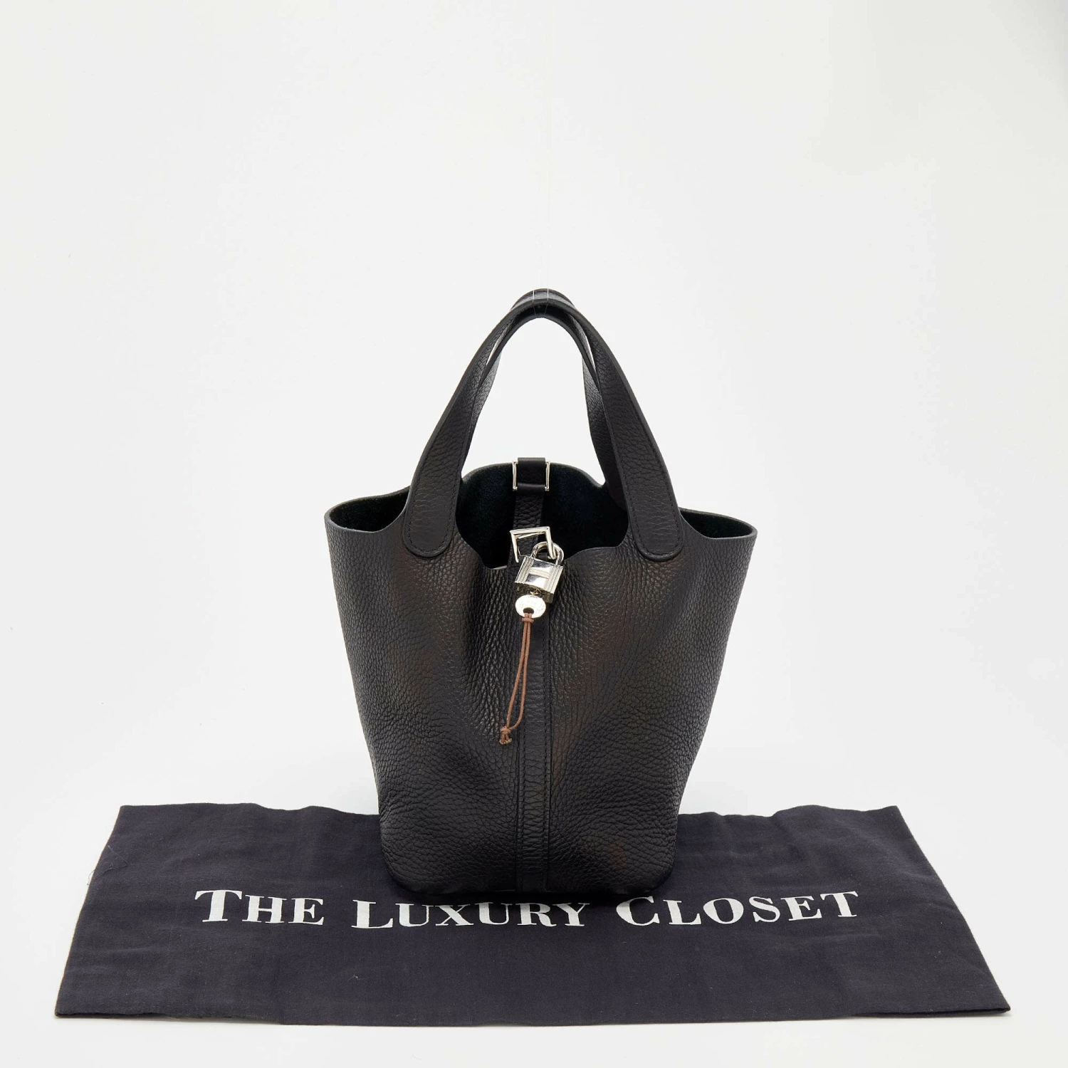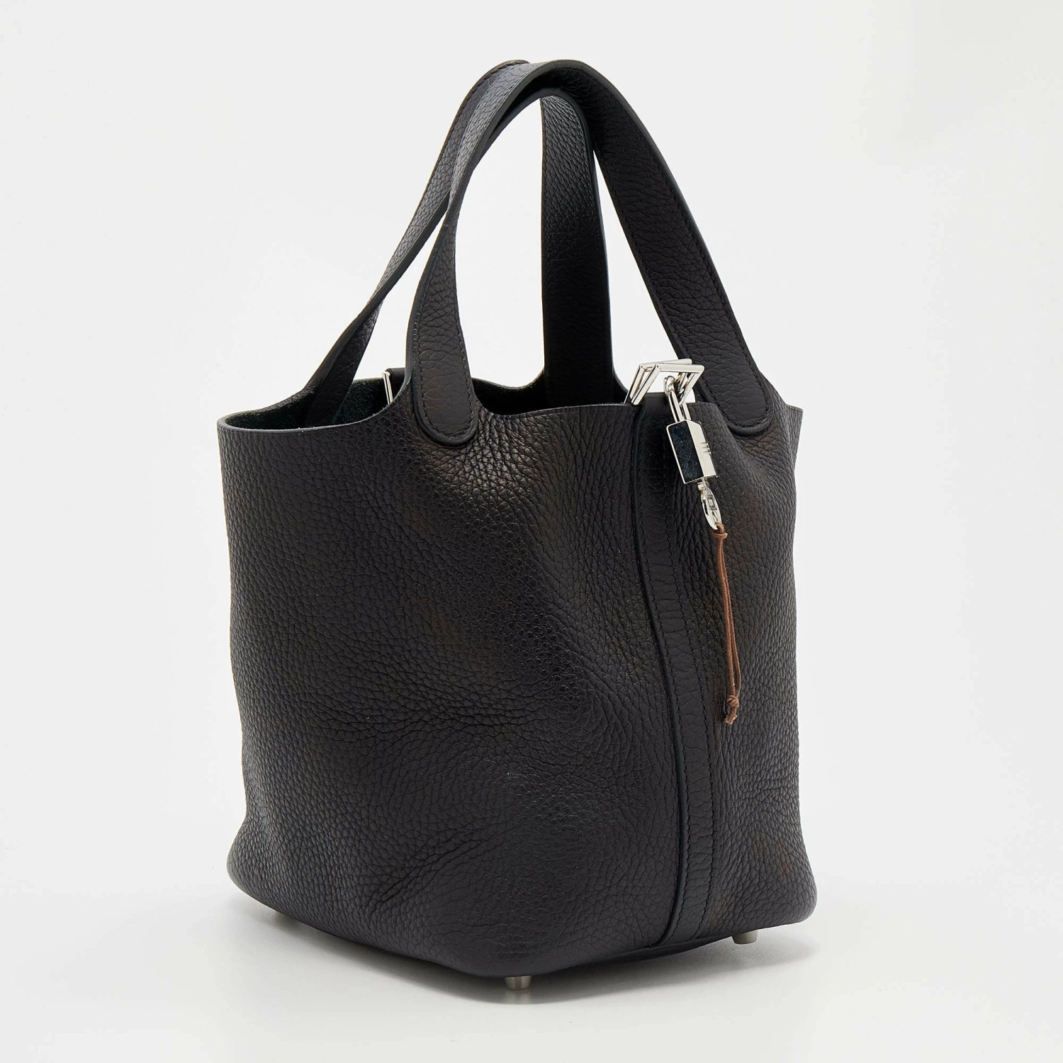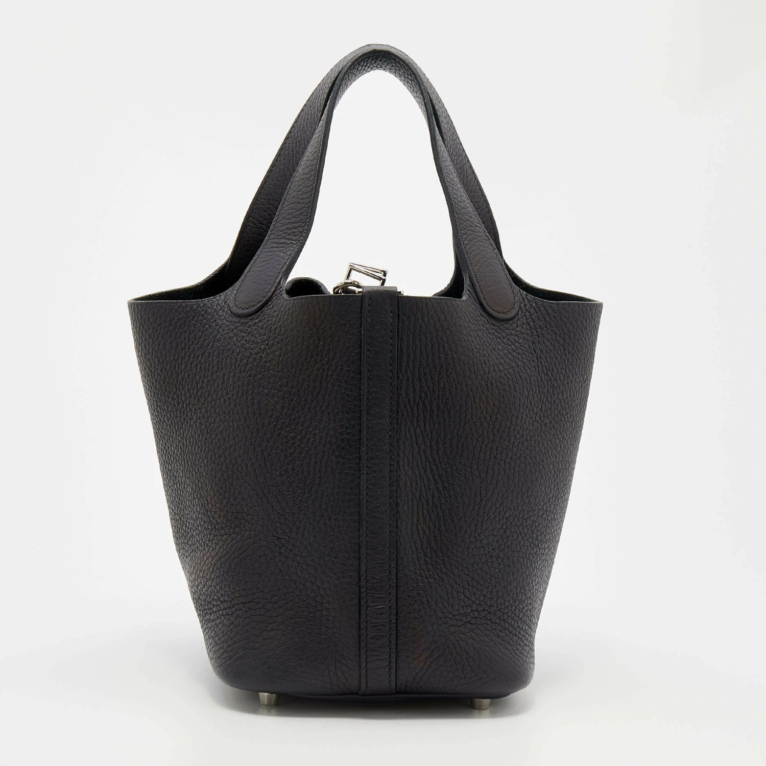 Wonderfully crafted from Clemence leather, this Hermes Picotin Lock 18 is a creation for those who love a blend of luxury and style. It comes in a grand black color, and it sits in a bucket-like shape with two handles and a leather interior. Armed with protective metal feet as a finishing touch, this Picotin will be a sweet style companion.