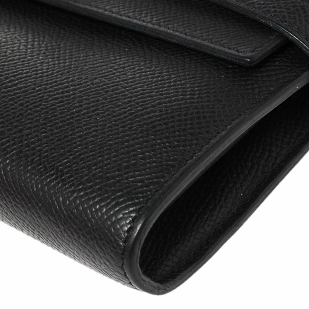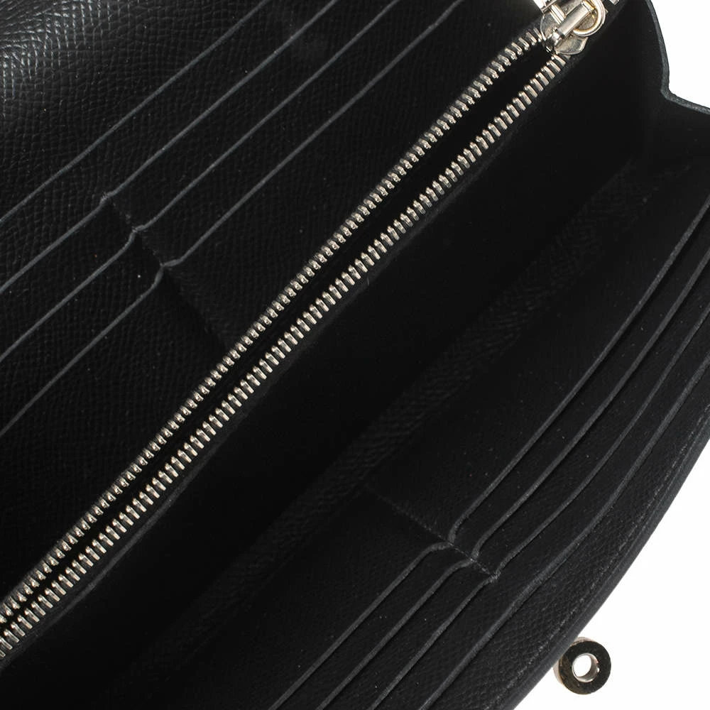 The Kelly is a name synonymous with Hermes. It is a symbol of their wondrous dedication to craftsmanship and classic style. The lock of the bag, which is a turn lock, now appears in jewelry and wallets. This long wallet also carries the iconic Kelly lock, in silver-tone, and it comes crafted from black Epsom leather with multiple slots and compartments to carry your essentials. Brimming with lavish details and artistry, this wondrous creation deserves to be yours.