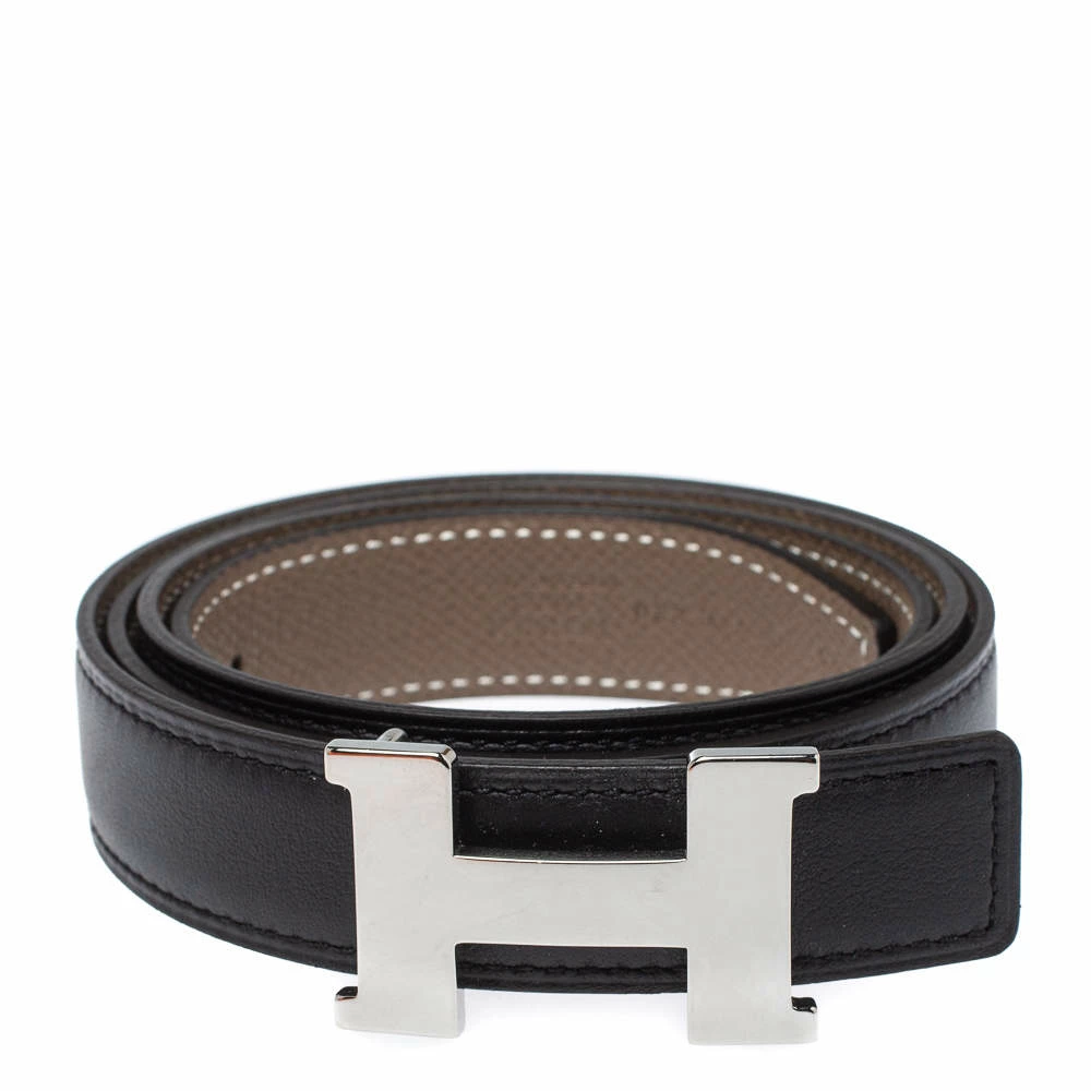 A classic add-on to your collection of belts, this Hermes piece has been crafted from Epsom and Swift leather. It is reversible with a black shade on one side and grey on the other. It is topped with an H buckle in silver-tone. This wardrobe essential piece will continually complement your style.