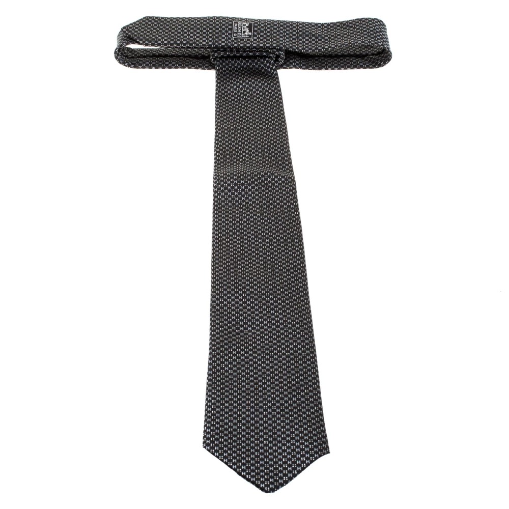 Characterised by the Faconnee H print, this tie from Hermes will elevate your everyday formal look with a touch of style and quirkiness. It is crafted from a silk blend and flaunts lovely shades of black. The tie is complete with the brand label keeper loop at the rear.