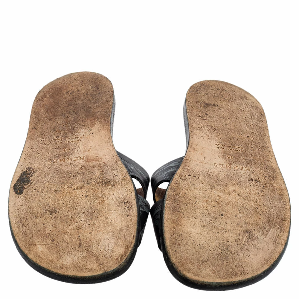 Hermes is a brand that epitomizes art and all their designs have a luxurious blend of comfort and style. These Ferronnerie printed Izmir sandals have been crafted from leather in Italy and feature the iconic H on the vamp, making it easy to slip on over all your casual outfits.