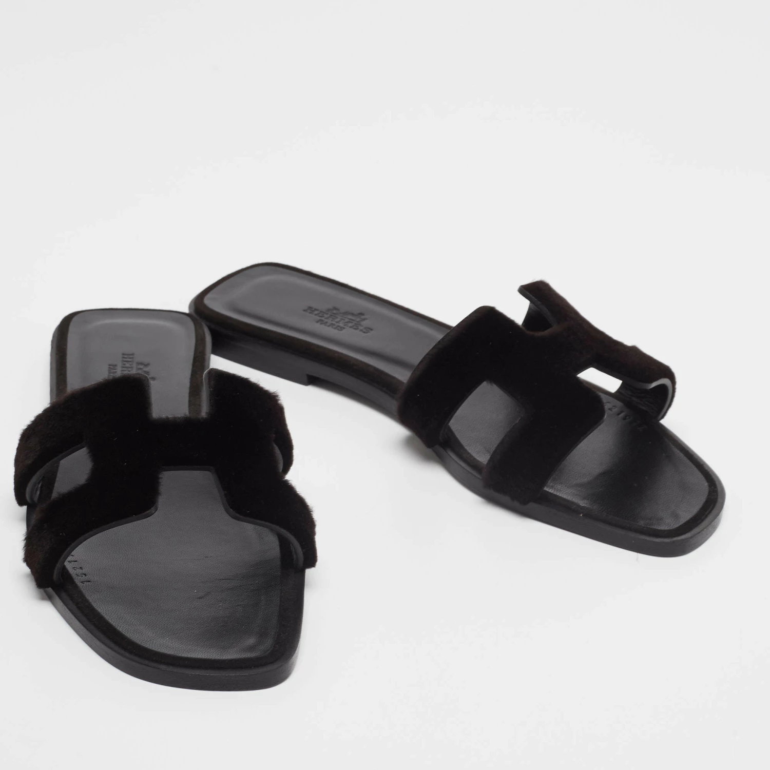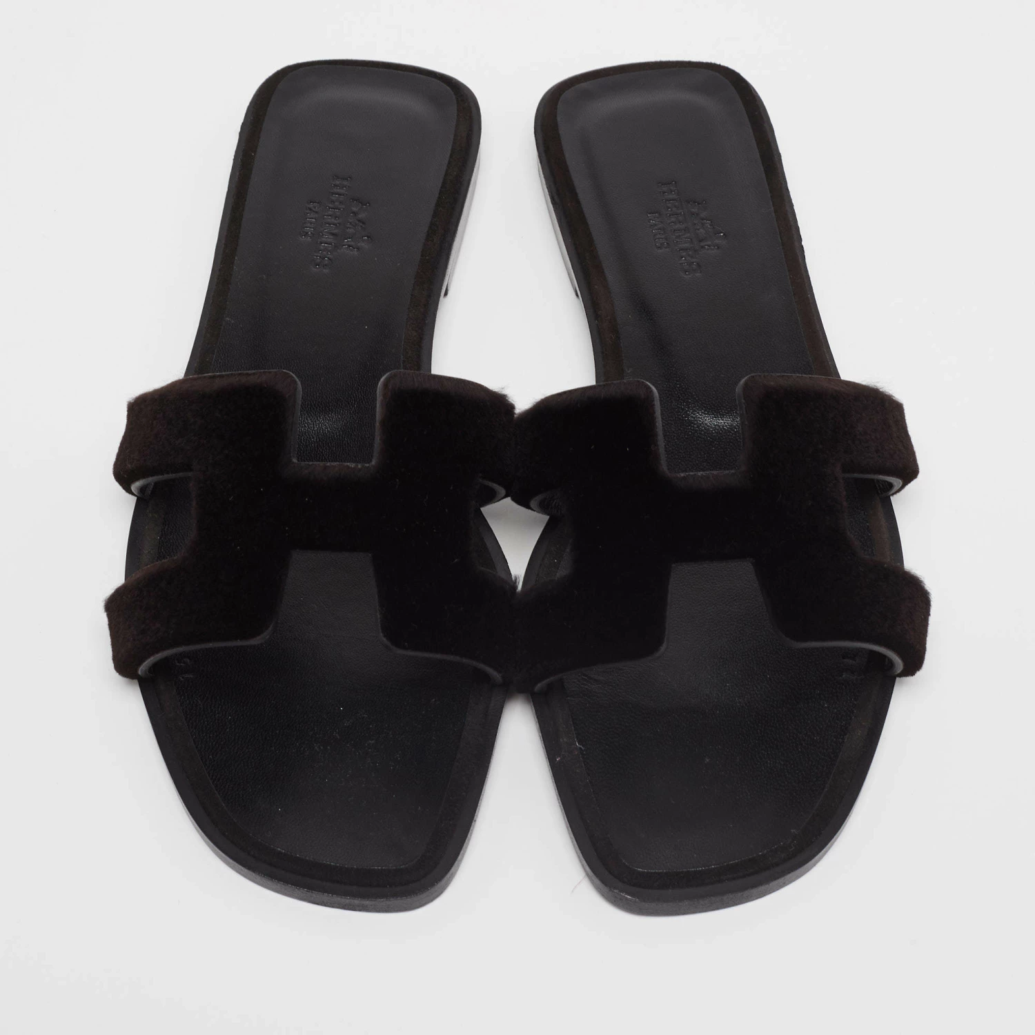 Add the iconic Hermès Oran sandals to your shoe collection with this pair. These black-hued Oran flat sandals have been crafted in Italy and they feature the iconic H on the vamps in fur and lined insoles in leather to provide comfort at every step.