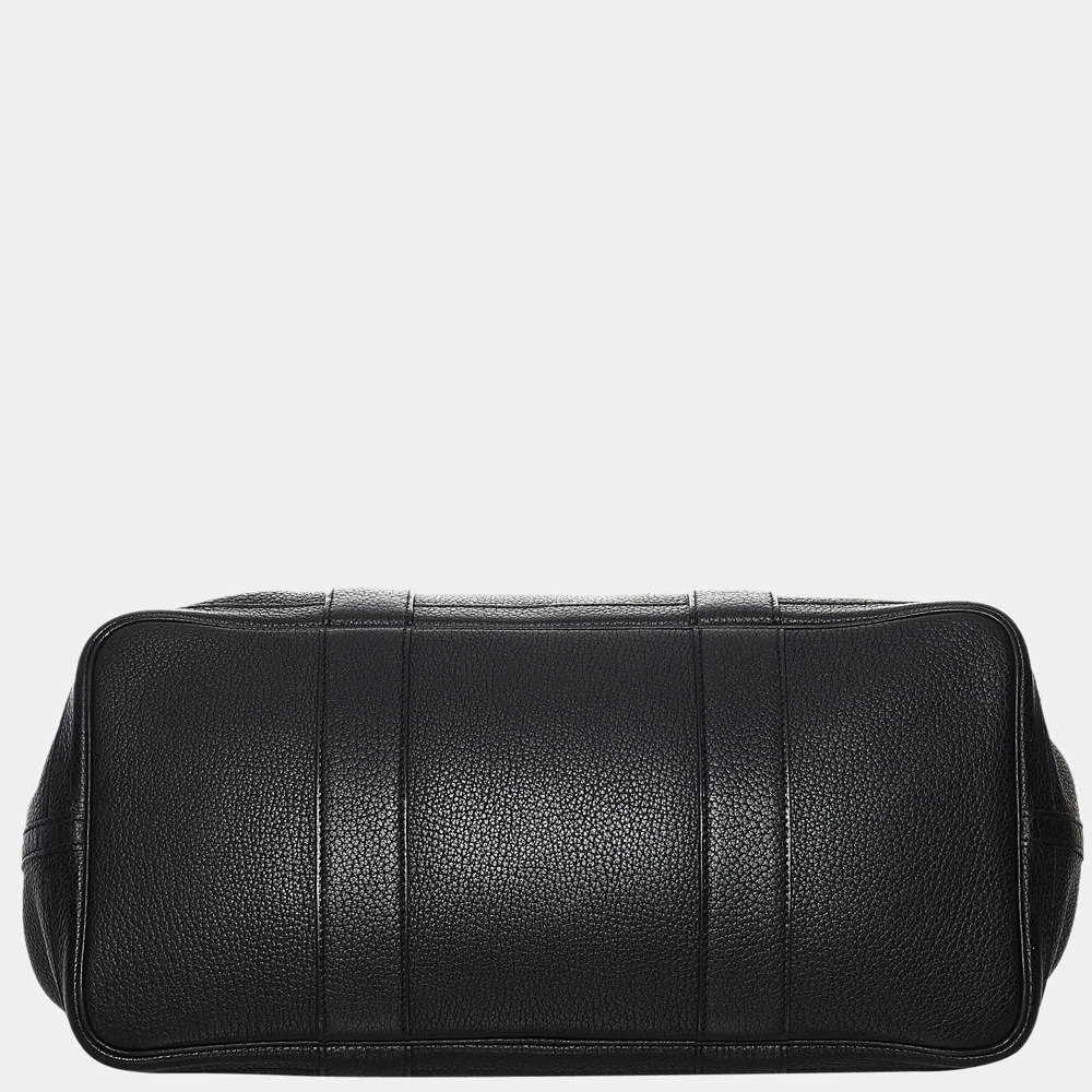 The Garden Party features a leather body, rolled leather straps, and a top clasp closure.