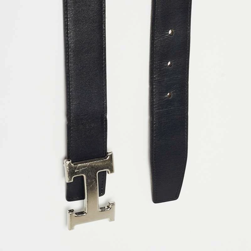 This Hermes reversible belt is crafted from Box and Togo leather. The classic piece has dual shades to match a variety of outfits. It is completed with a silver-tone H buckle.