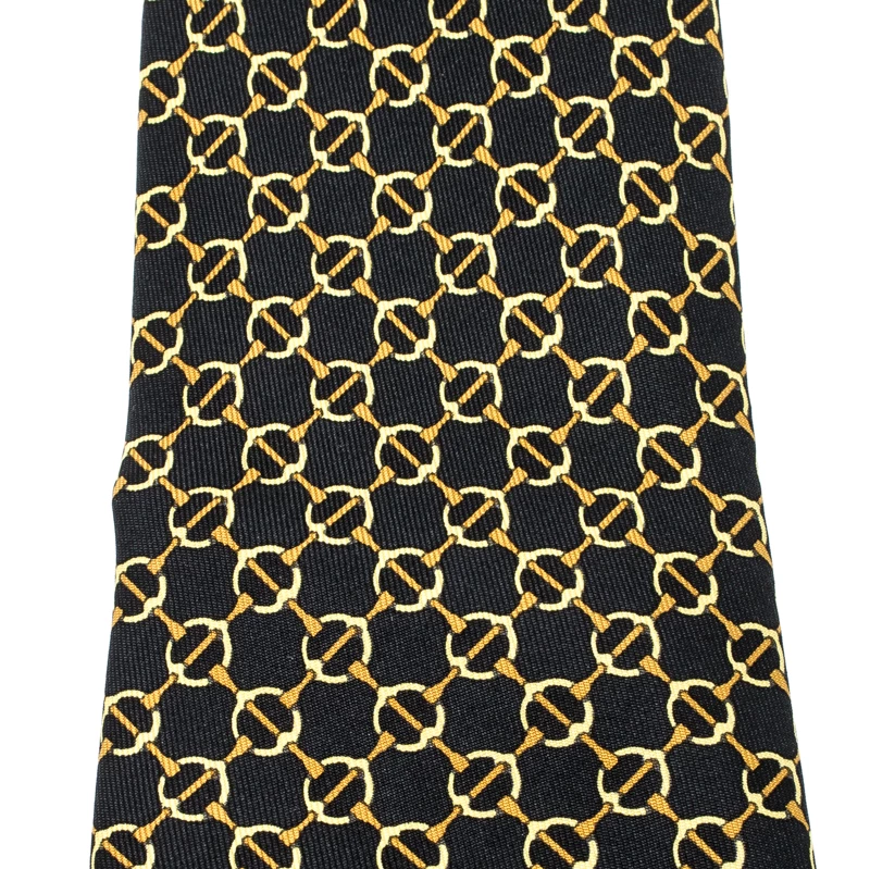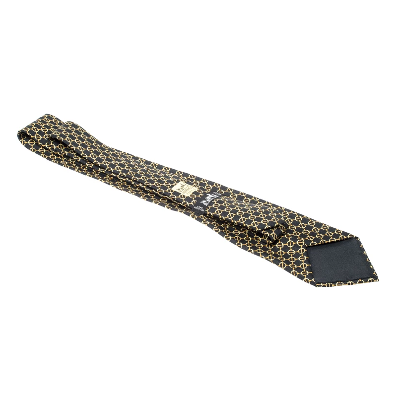 Get a polished look with a smart Hermes tie that is defined by its handsome cut and smart horsebit print all over. This black tie adds a sartorial twist to your everyday style.