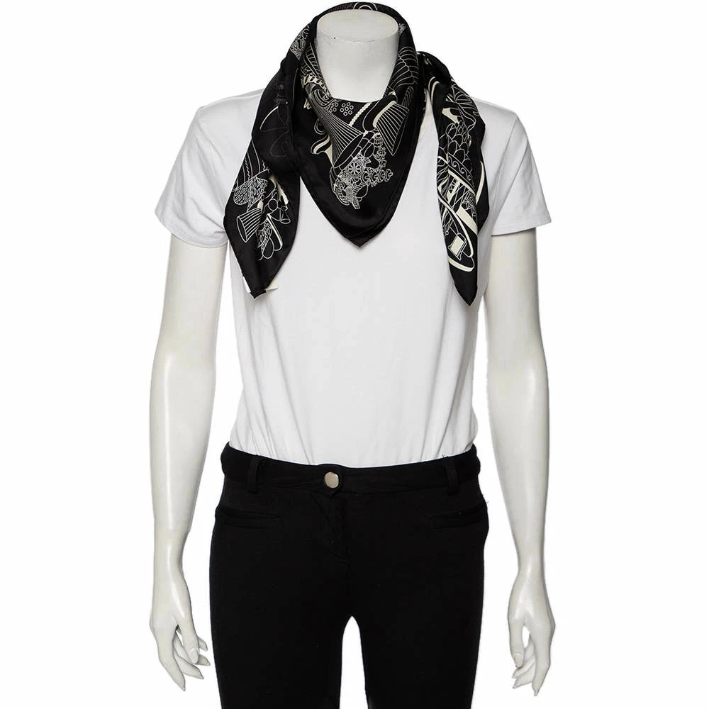 You are bound to impress onlookers with this scarf from Hermes. Luxuriously cut from silk, the scarf has a gorgeous print all over its expanse, and every accent on the piece speaks royalty. The scarf is complete with the brand label on it.