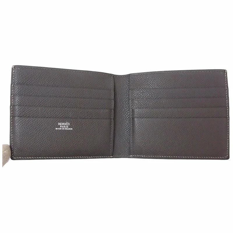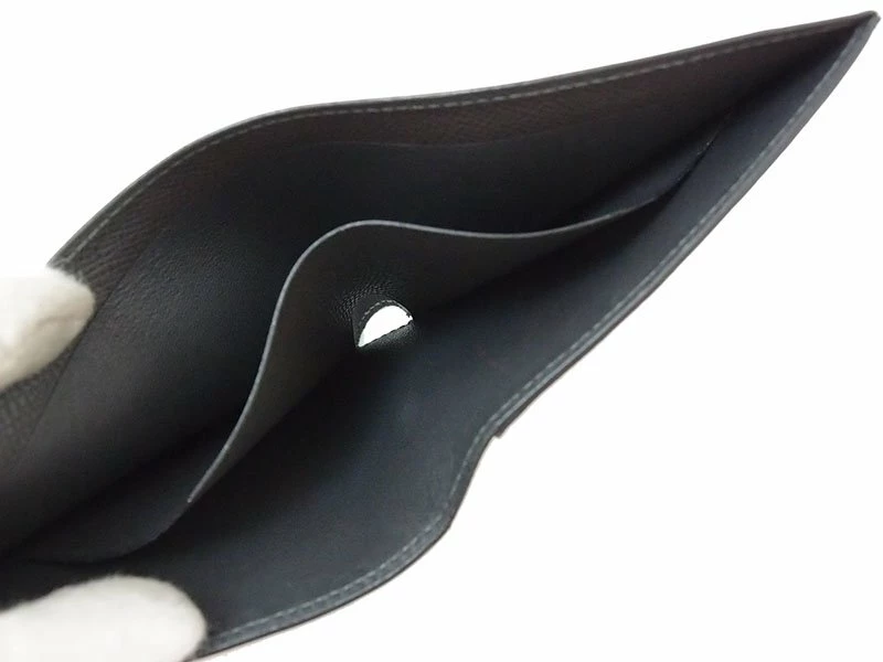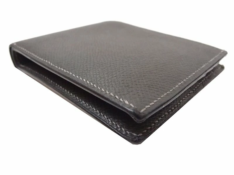 This charming Bi-fold wallet by Hermes has been crafted with finesse in black leather. The interior is leather lined and has eight card slots and two open compartments.