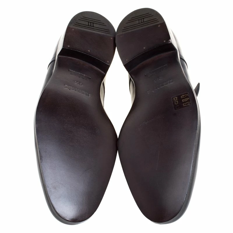 These Derby shoes from Hermes are sure to make you look suave, smart and very fashionable. Crafted from leather, they flaunt a neat black exterior, comfy insoles, and a buckle strap. With tough soles for maximum grip and comfort, these shoes are the perfect choice for the modern man.