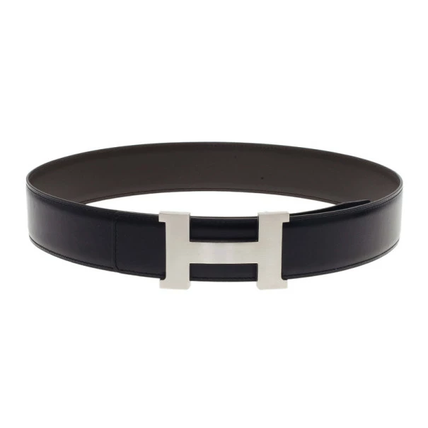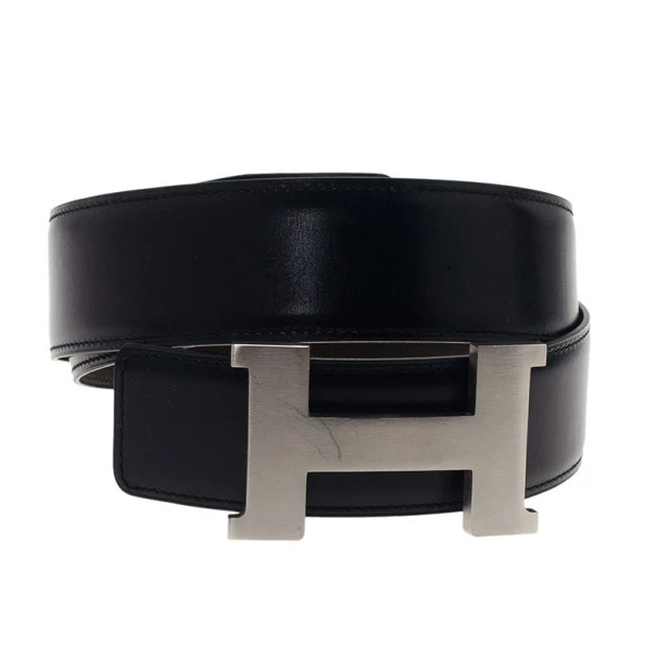 Classic and dashing, this Hermes belt will transform a casual look. Made from black leather, its simple design features a large silver-tone embossed H buckle that makes a statement.Original Retail Price: US $665