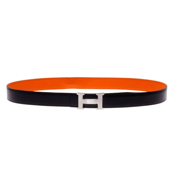 This Black Leather H Logo Constance Belt makes a stylish accessory for your outfits. Crafted from smooth leather, this Constance belt displays excellent stitching and finishing. The classy H logo buckle in silver tone and the Hermes name embossed on the belt add the finishing touches. This belt is reversible and can be worn on its other side for a more fun look, with bright orange leather and the classic H logo.