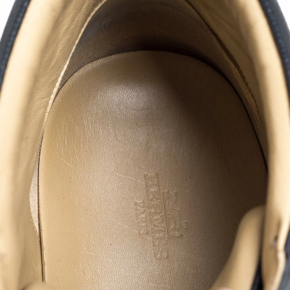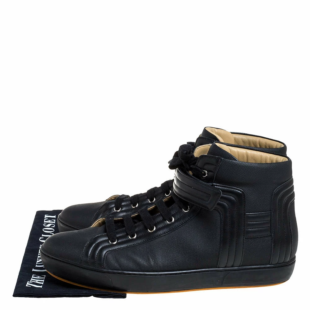 Brimming with fabulous details, these Hermes sneakers are crafted from leather into a high-top silhouette and feature lace-up vamps, ribbed trims and a velcro strap across the ankles. Comfortable soles and trendy appeal make these sneakers a must-buy.