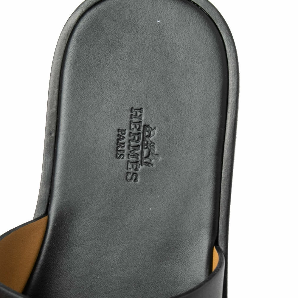 Hermes dutifully creates elegant pieces like these sandals that continue to remain in style. These Izmir sandals are made with black leather on the exterior with a cut-out strap across the upper. They are lined with leather insoles which makes them even comfortable. Let your casual styles appear more classy as you wear these sandals.