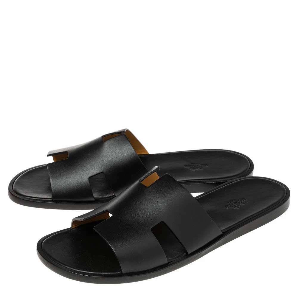 Hermès is a brand that epitomizes art and all their designs have a luxurious blend of comfort and style. These black Izmir sandals have been crafted from leather in Italy and feature the iconic H on the vamp, making it easy to slip on over all your casual outfits.