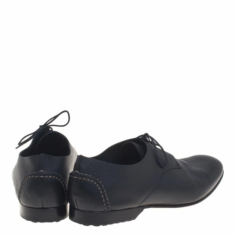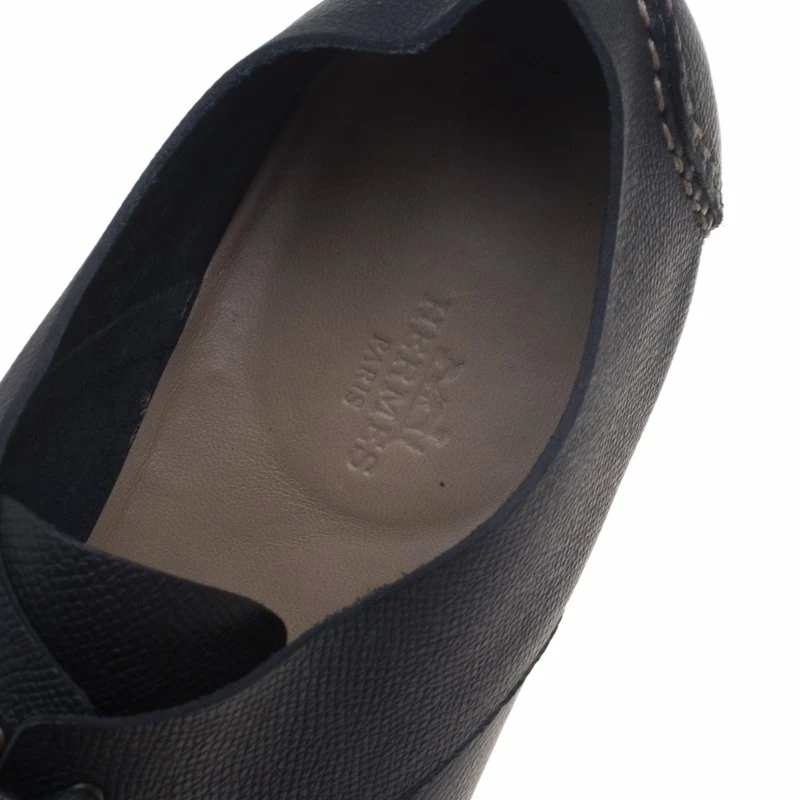A collector’s choice, this dapper Hermes Kent derby will surely impress you and your admirers! Crafted from beautifully textured Epsom calfskin leather, it has highly constructed quarters with contrasting shoelace eyelets sewn on the vamp. The pair is accented with hand-stitched details at the counter and rubber studded sole.