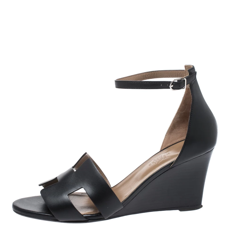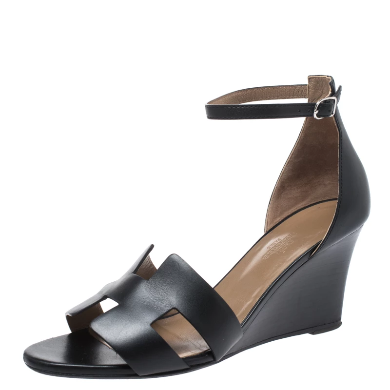 We have our hearts set on these sandals from Hermes. This black pair has been crafted using leather and designed with the signature H on the vamps. They also feature ankle buckle closure and 8 cm wedge heels. Take this number out and enjoy both comfort and style.