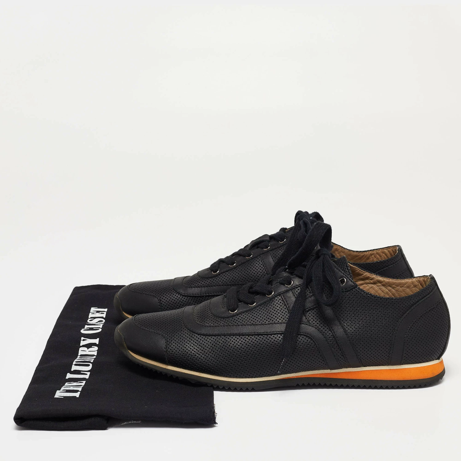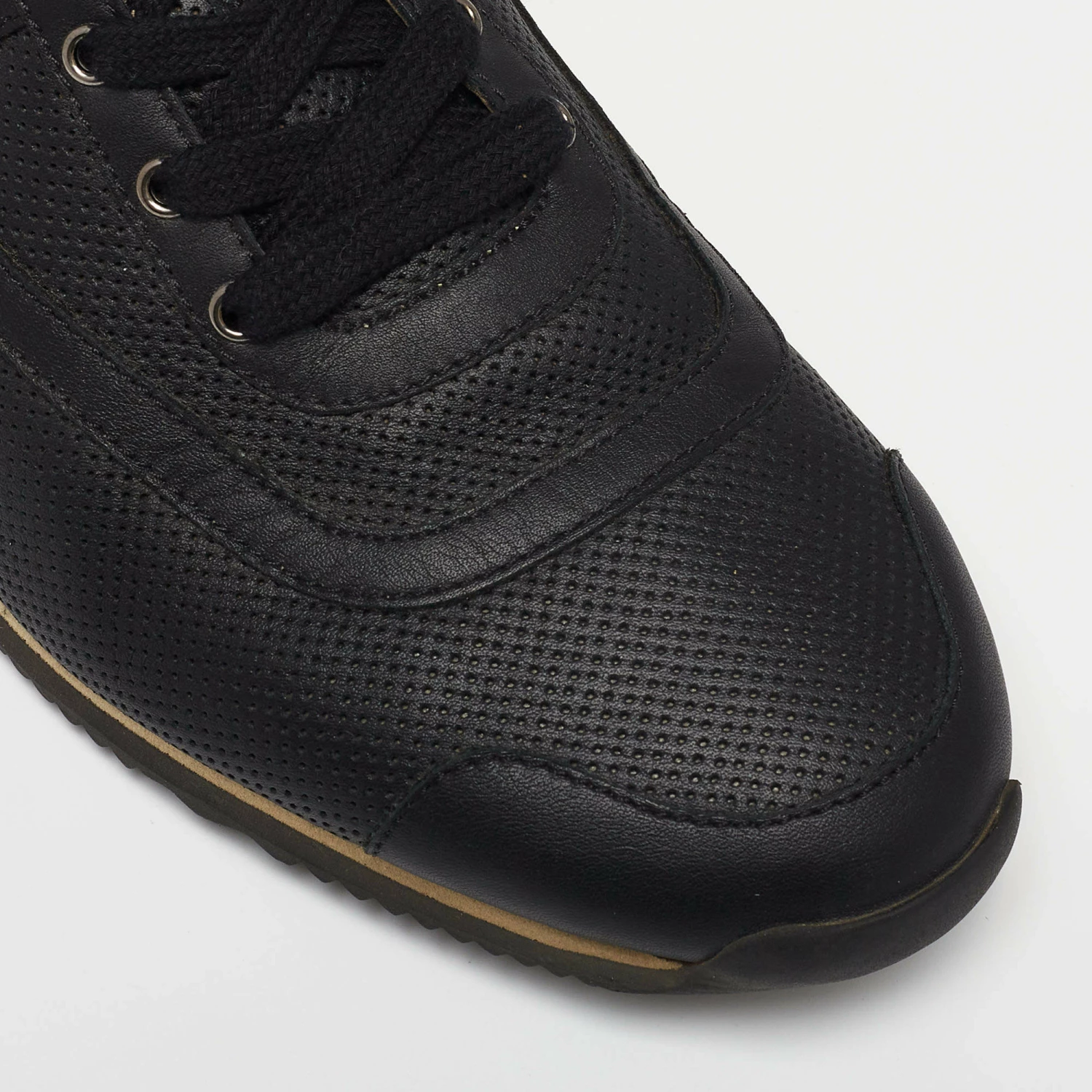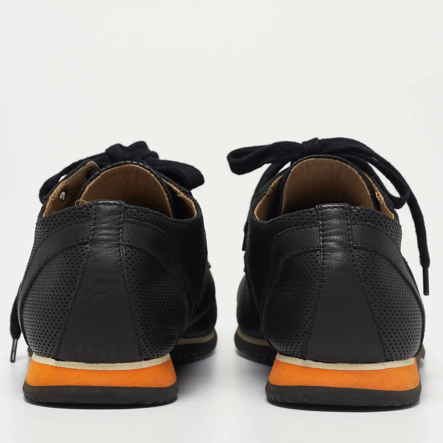 Delivered in a classic low-top silhouette, these Hermes sneakers are a seamless combination of luxury, comfort, and style. They are made from leather in a black shade and added with perforated details, laced-up vamps, and comfortable soles.