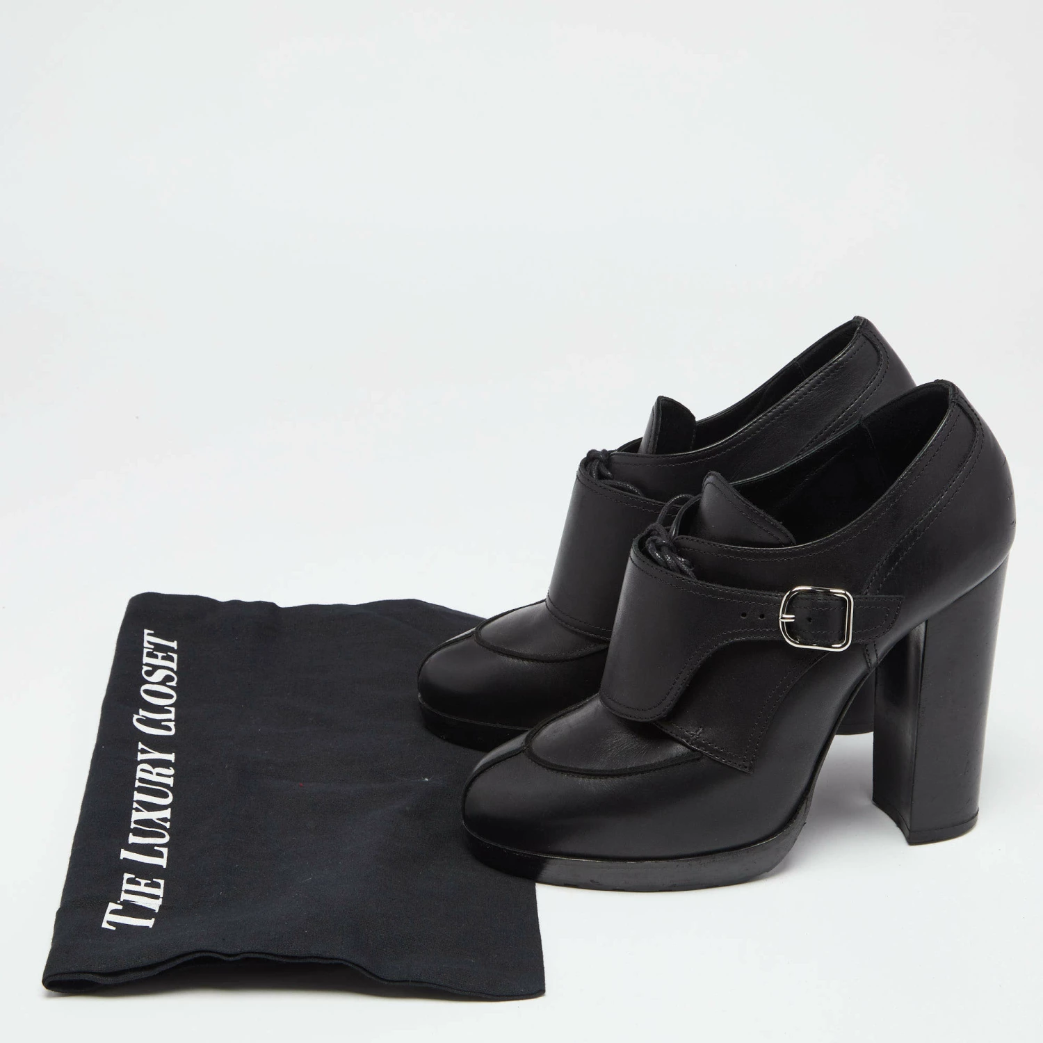 These Hermes booties are fresh and contemporary in a classy black hue. Crafted from leather, they flaunt concealed lace-up vamps, an ankle buckle closure, and durable soles. The 12.5cm heels of this pair is supported on platforms for a smooth walk.
