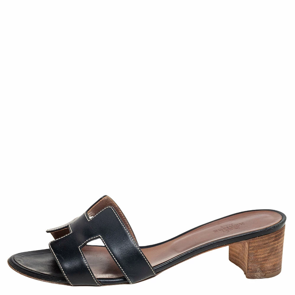 Crafted in leather, these Oasis slide sandals from Hermes are classy and comfortable with their block heels. These slides feature the signature H-shaped straps at the front. The insoles are lined with leather and carry the brand label.