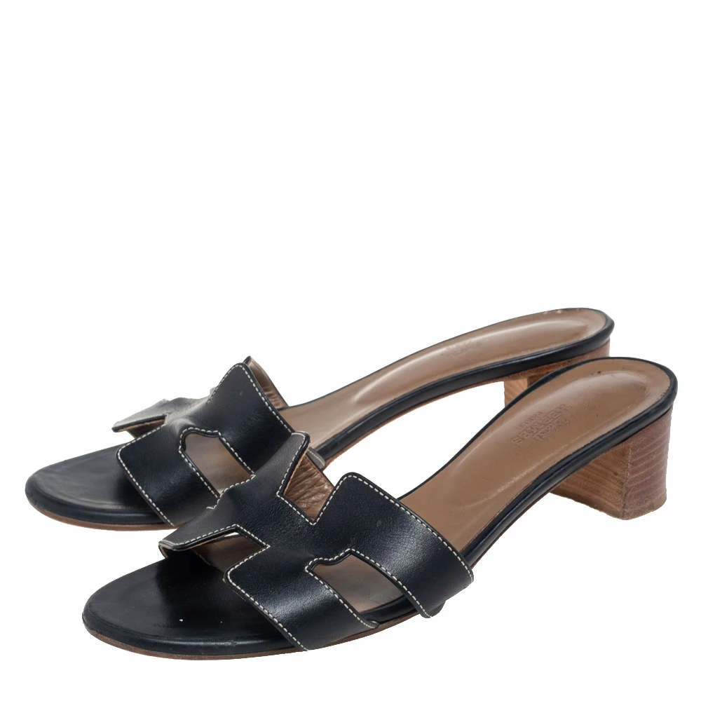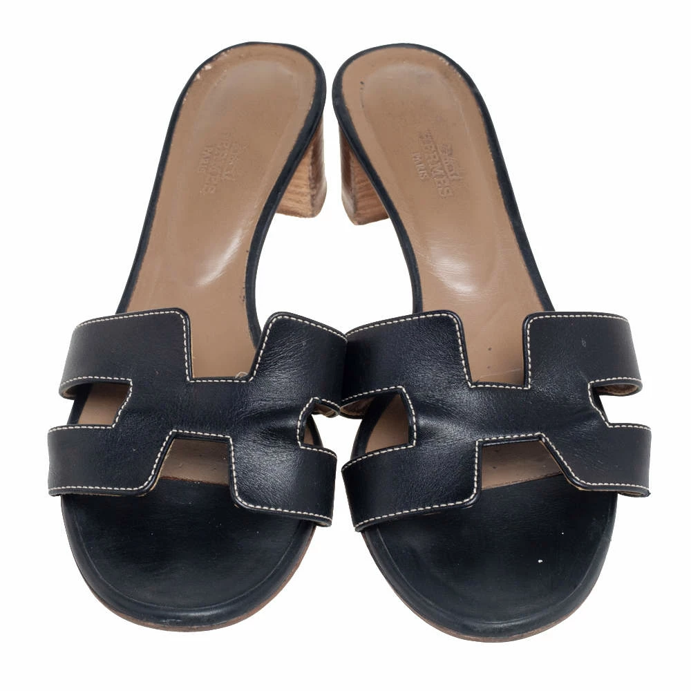 Hermes Black Leather Oasis Sandals Size 39.5 For Women -Deals Hermes Store luxury women hermes used shoes p541687 008