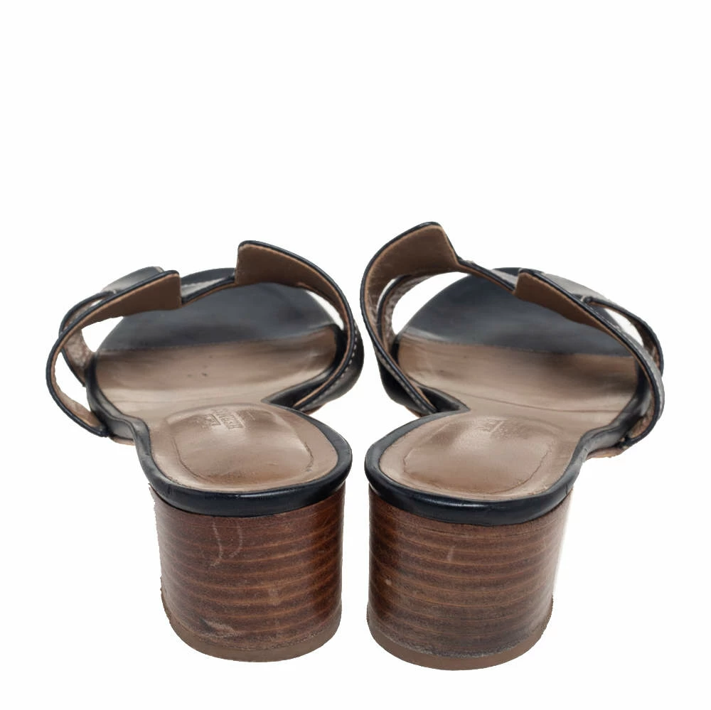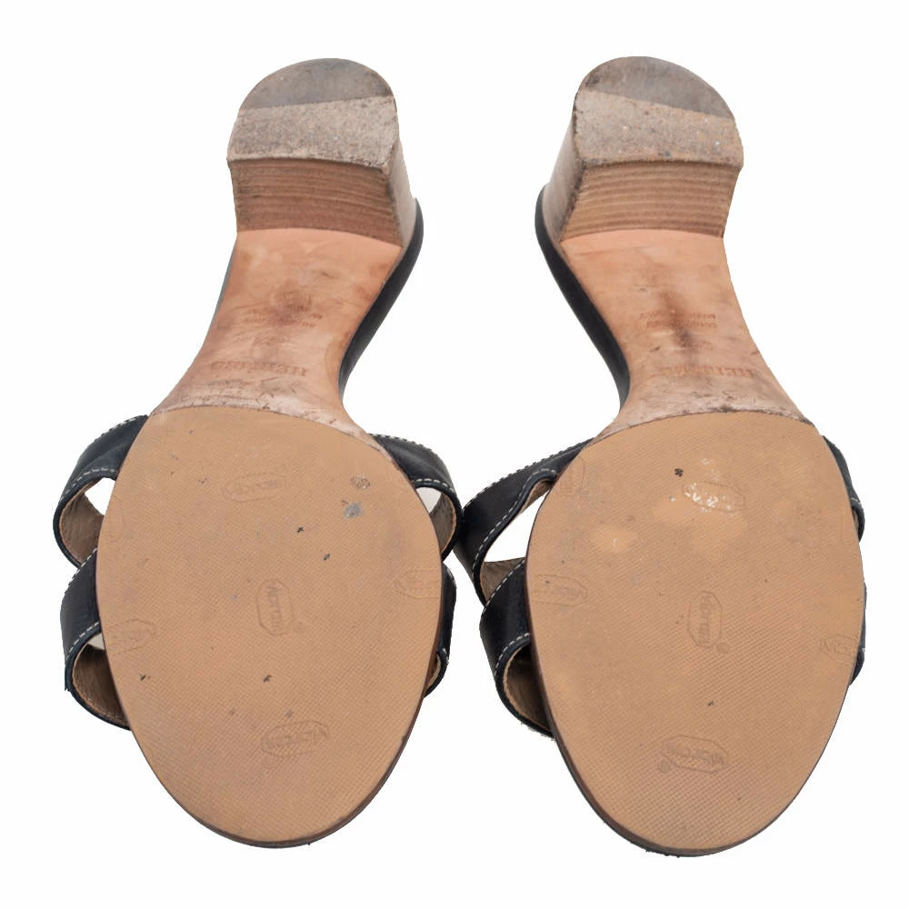Hermes Black Leather Oasis Sandals Size 39.5 For Women