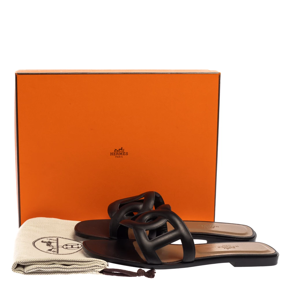 These comfortable slides from Hermes are ideal for those days when you have to spend long hours outdoors. The Omaha slides come crafted from leather in a classic black shade and have been styled with cut-out detailed vamp straps.